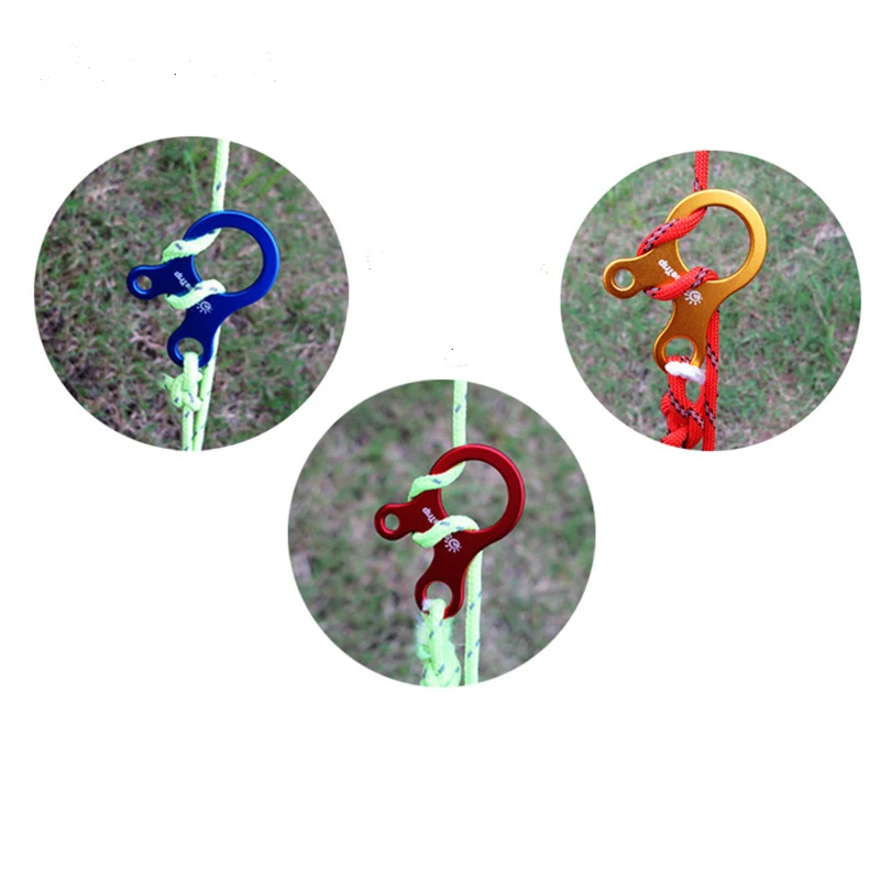 10 pcs/lot Outdoor Camping Tent Wind Rope Buckle 3 Hole Aluminium Alloy Rope Tensioner Tent Cord Rope Fastener Antislip Tightening Hook