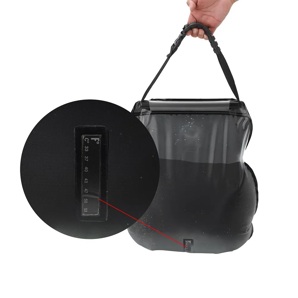 ◇With UV heat-seal coating, it can heat water for about 3 hours under direct sunlight,no need for any plug-in device,eco-friendly and leak-proof PVC material, non-toxic, healthy and safe.The temperature indicator (°C/°F) on the back of sun shower bag can help you monitor water temperature, so you don’t need to guess the water temperature in remote areas!