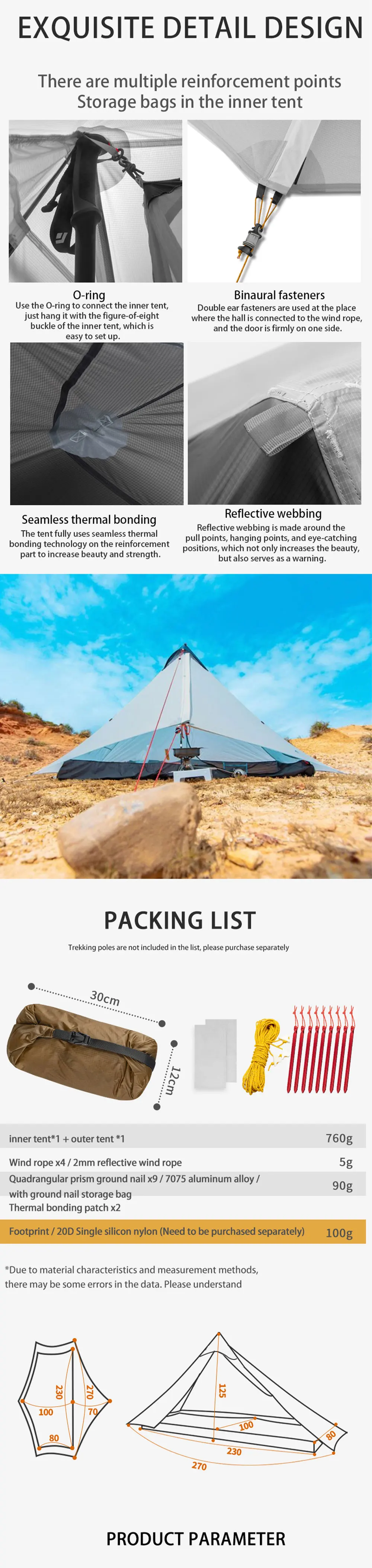-Buying the outer tent or inner tent separately does not include other accessories!