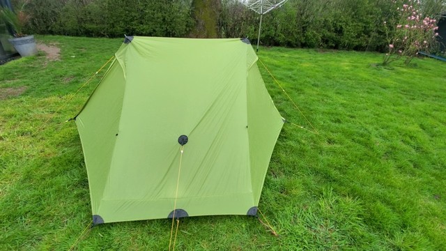 I have just tested it in the garden but it looks ok. Weight of the products: Tent 886 g Tent peg 11,25 g Compression bag 40 g Tent peg bag 6 g