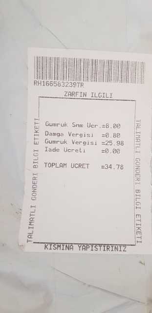 Arrived in my hand in 14 days, it has passed without trouble from customs, according to the price on it, it held customs tax 35 TL