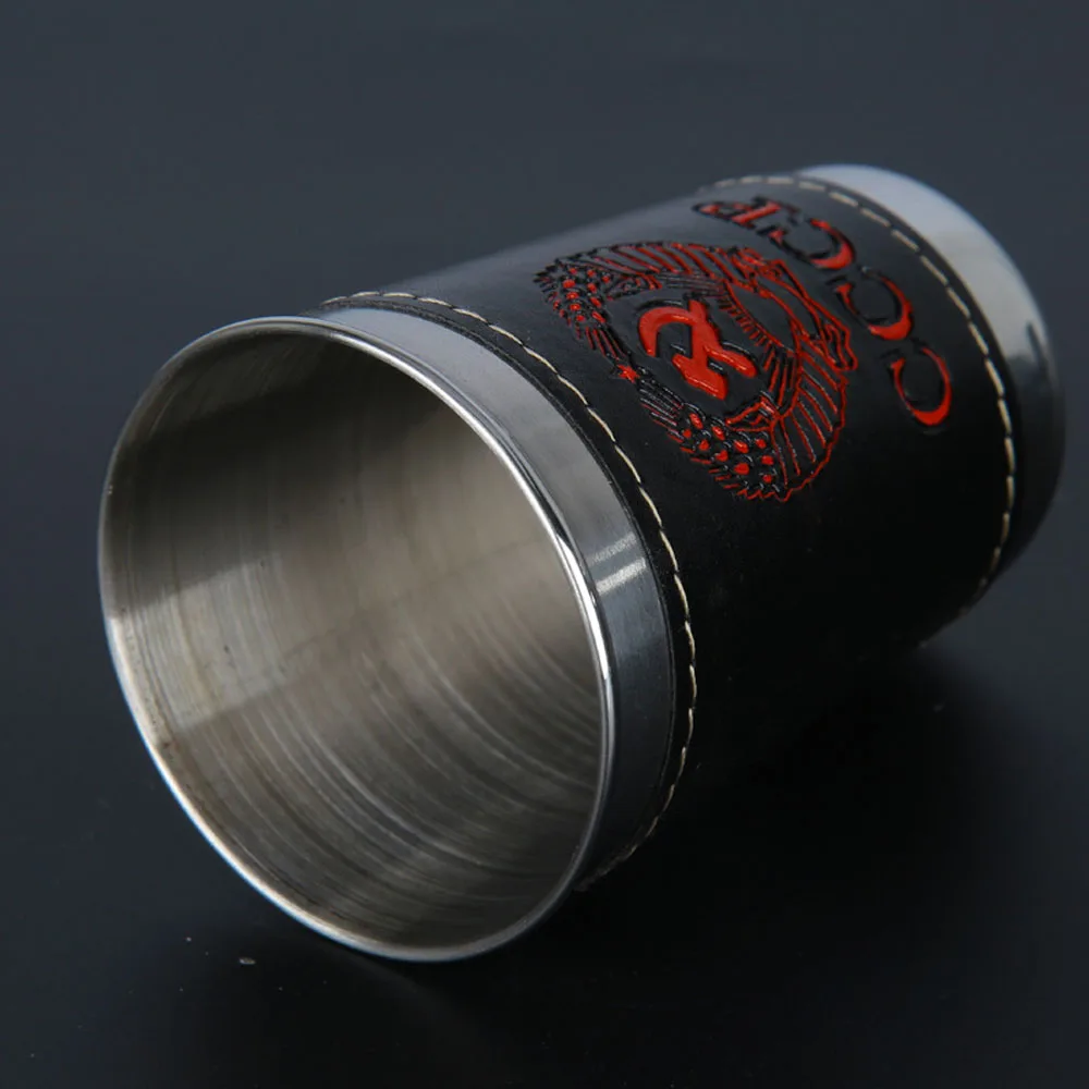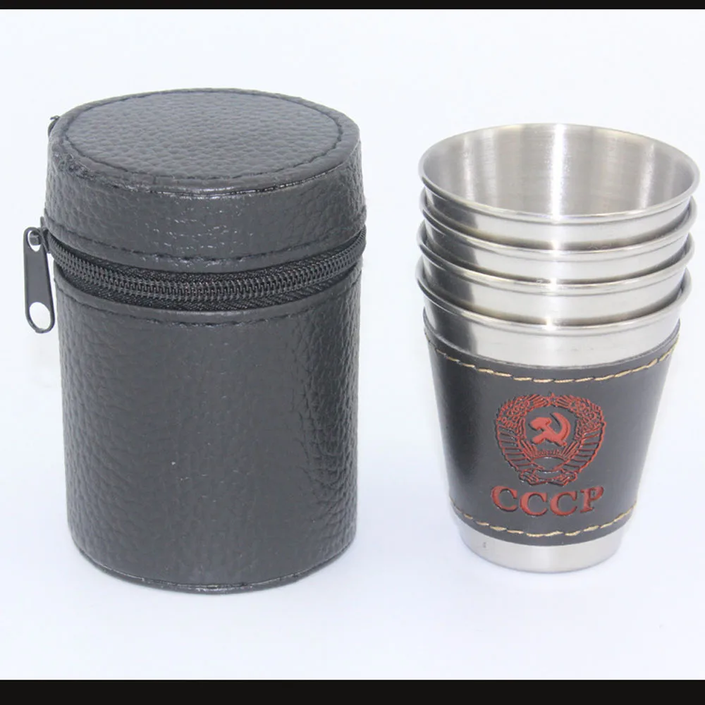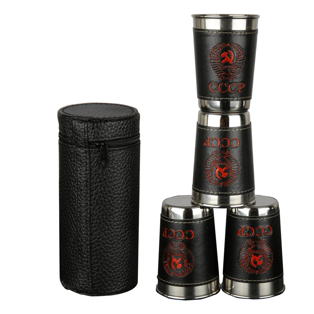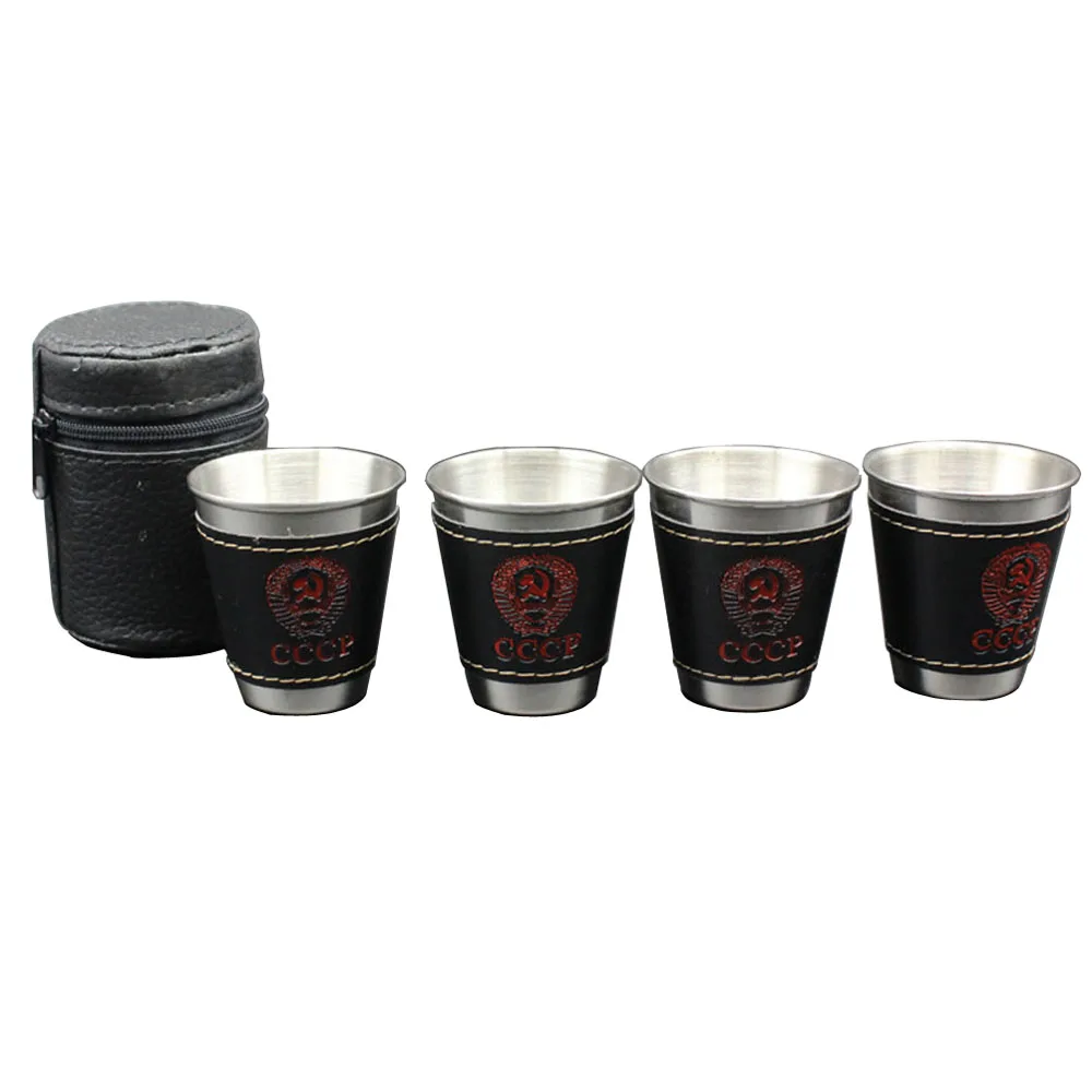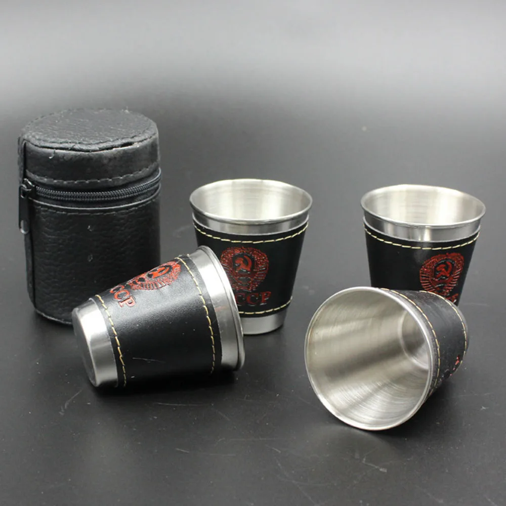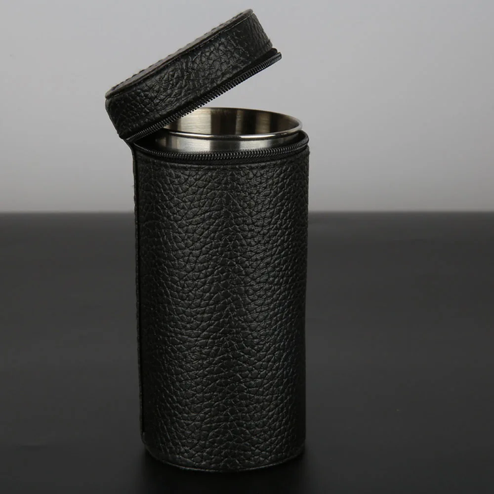 4pcs/set Outdoor Camping Tableware Mugs Travel Camping Cup Stainless Steel Travel Cups Wine Beer Whiskey Bottle PU Leather