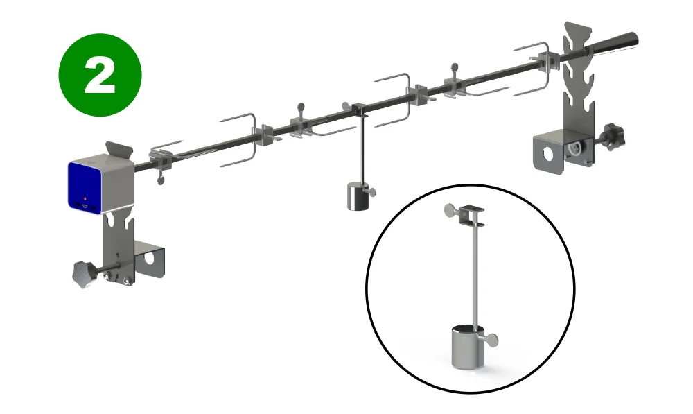 Put it on the brackets to test as shown (the Rotating rod is placed in the small groove, the Extension rod is placed in the large groove), that it can rotate smoothly, and then tighten the locking screws on the brackets.