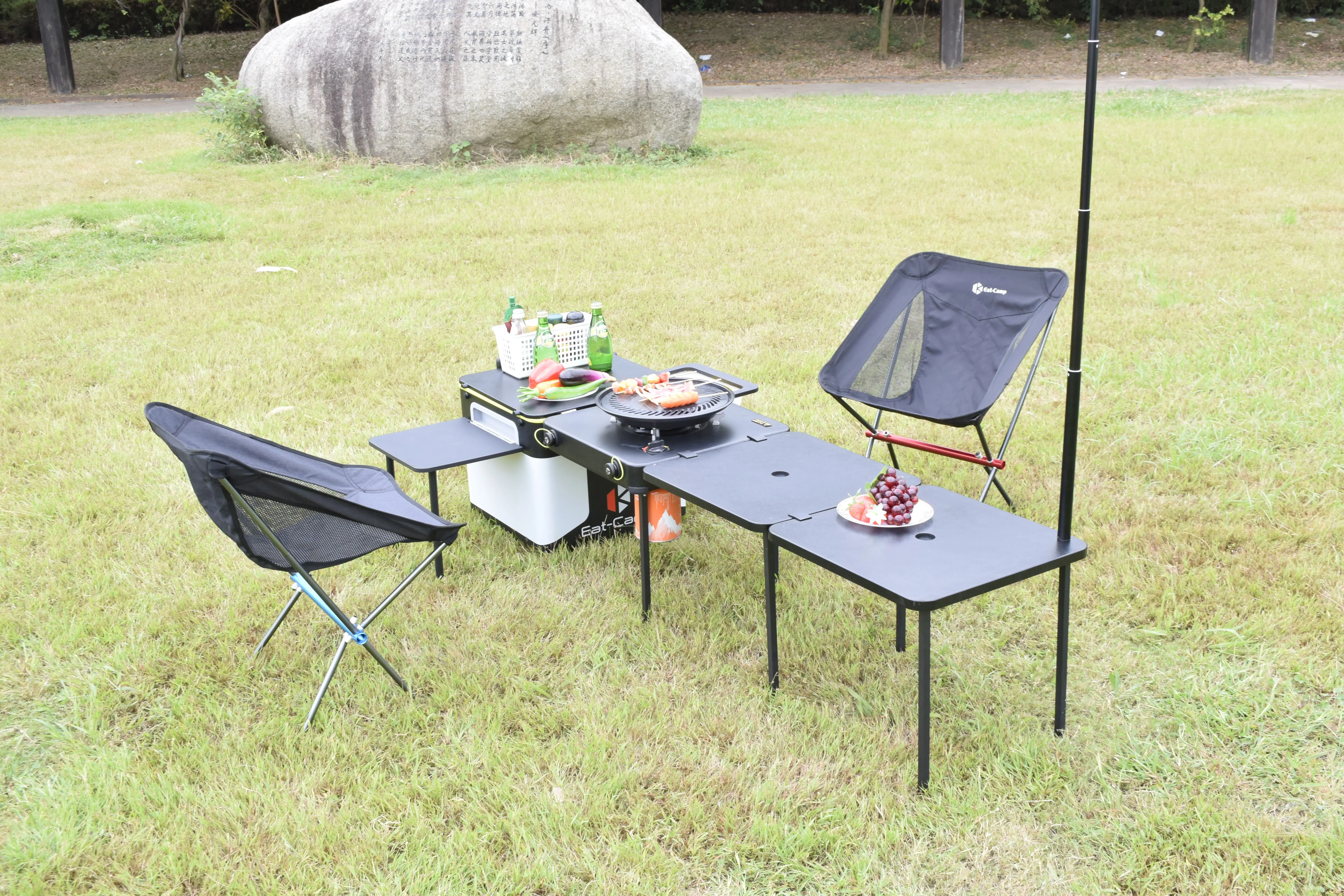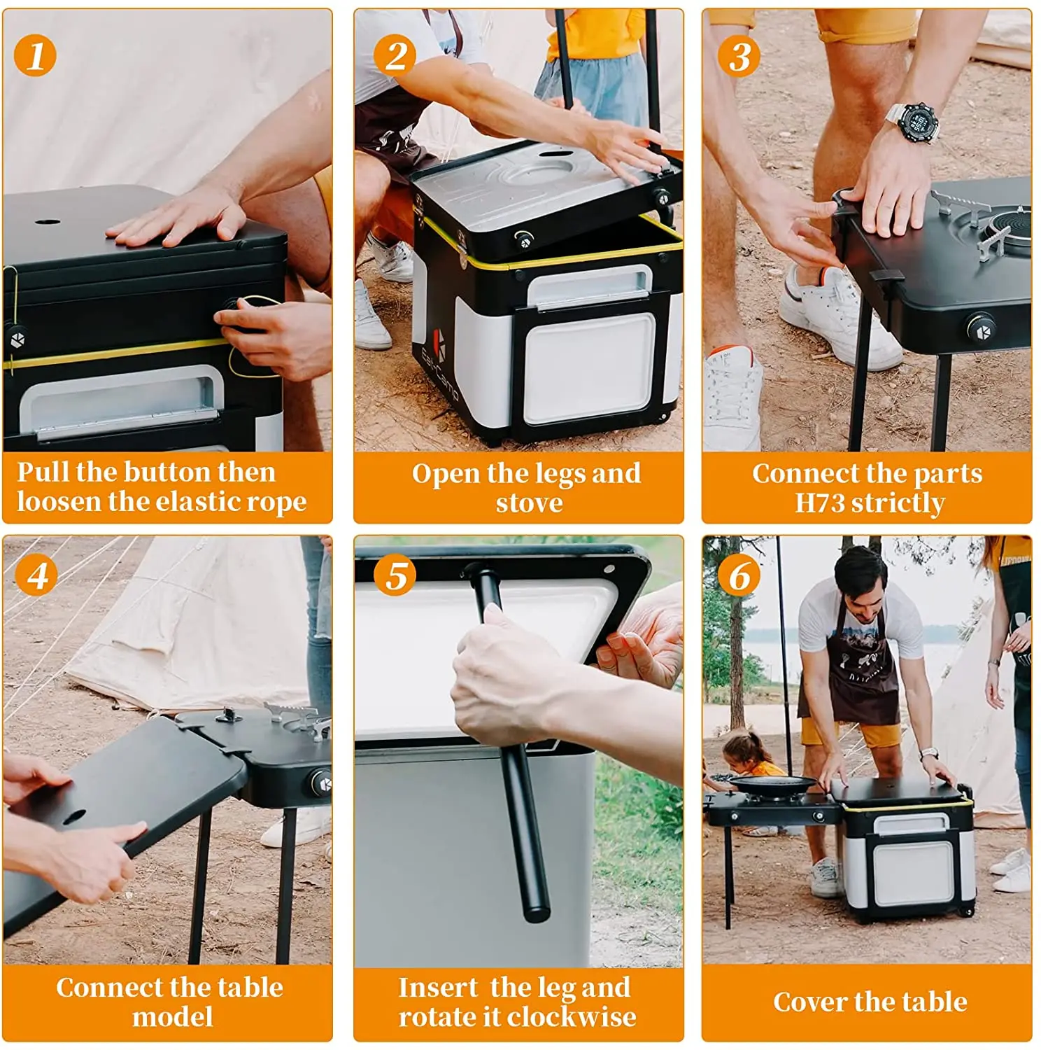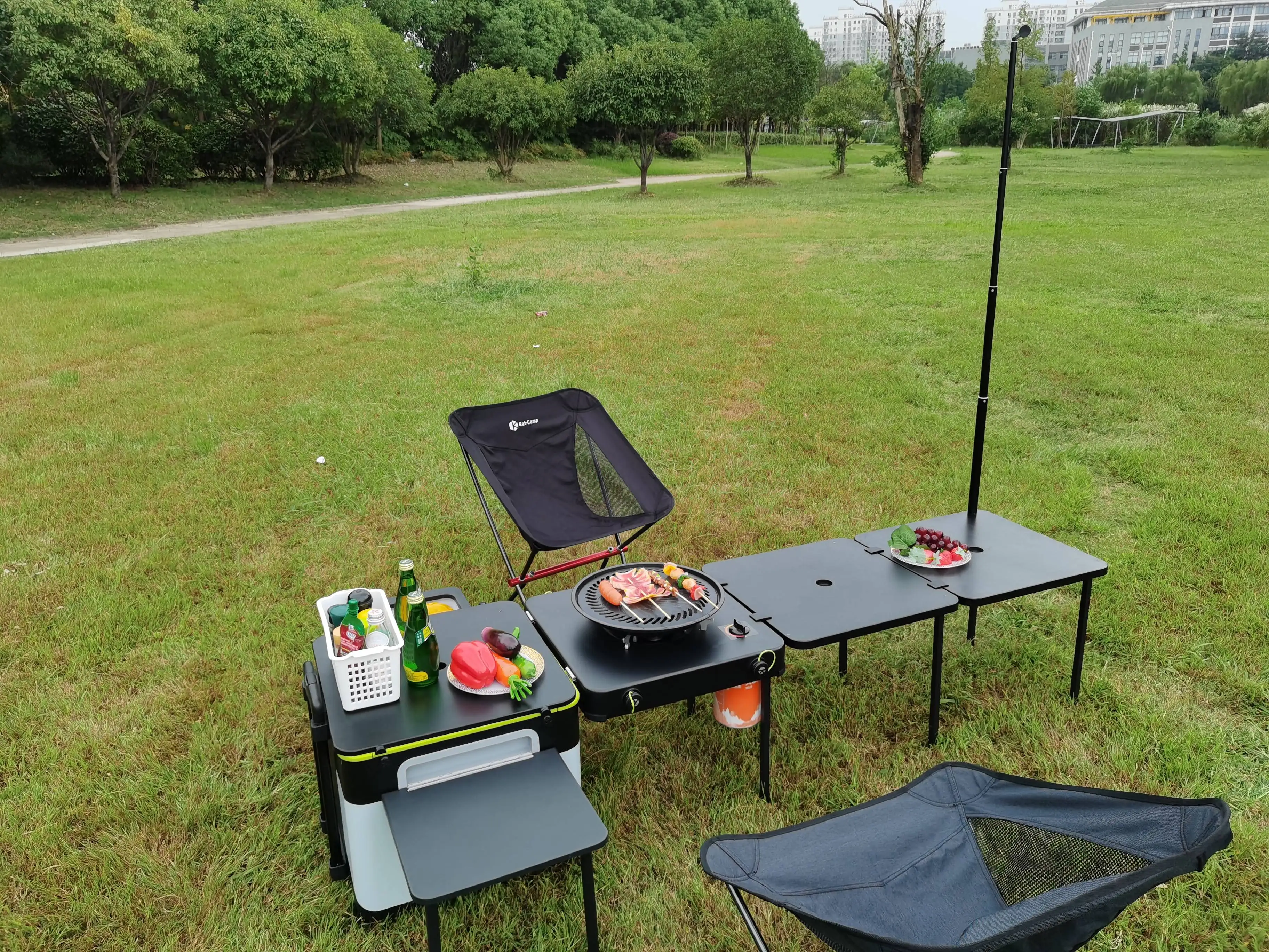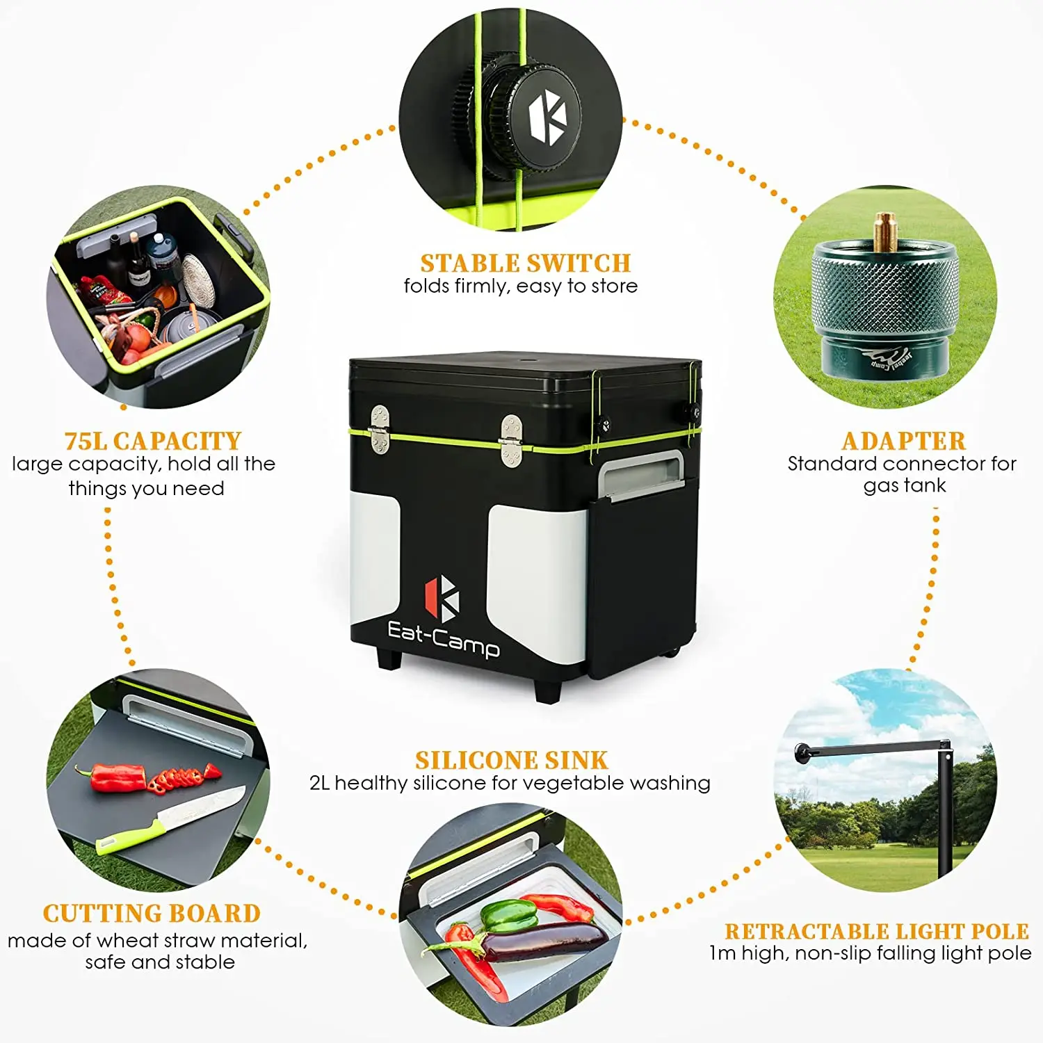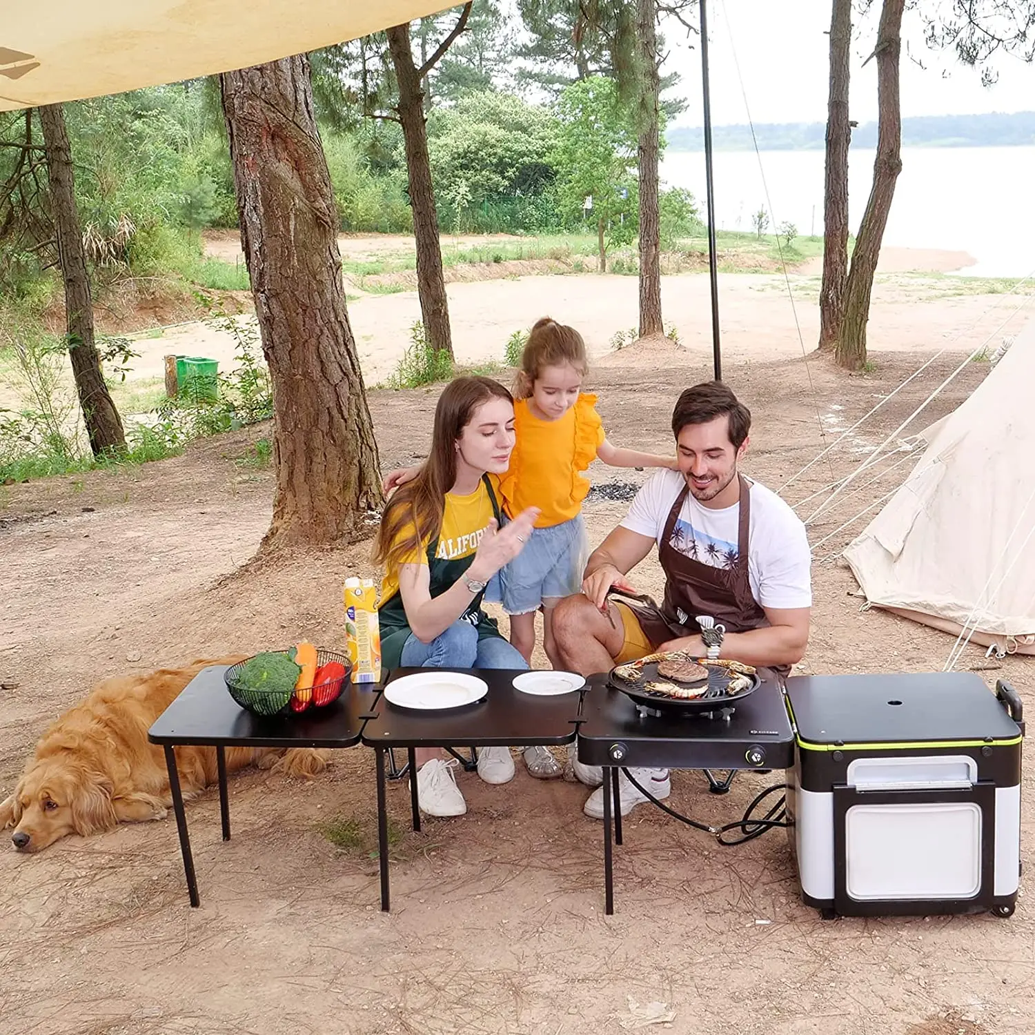 Camping Kitchen Outdoor Camping Cooking Station with Windproof Stove, Folding Camping Tables Storage Organizer for Beach BBQ Picnic Party
