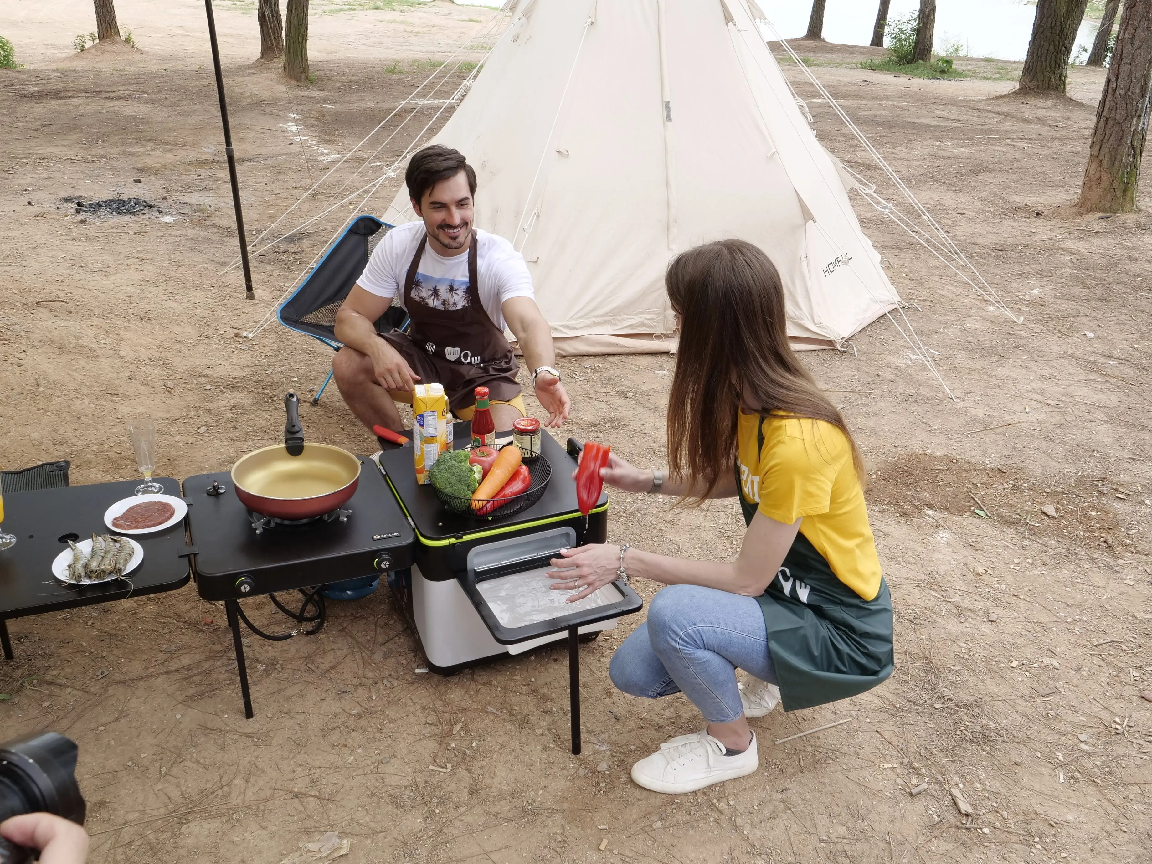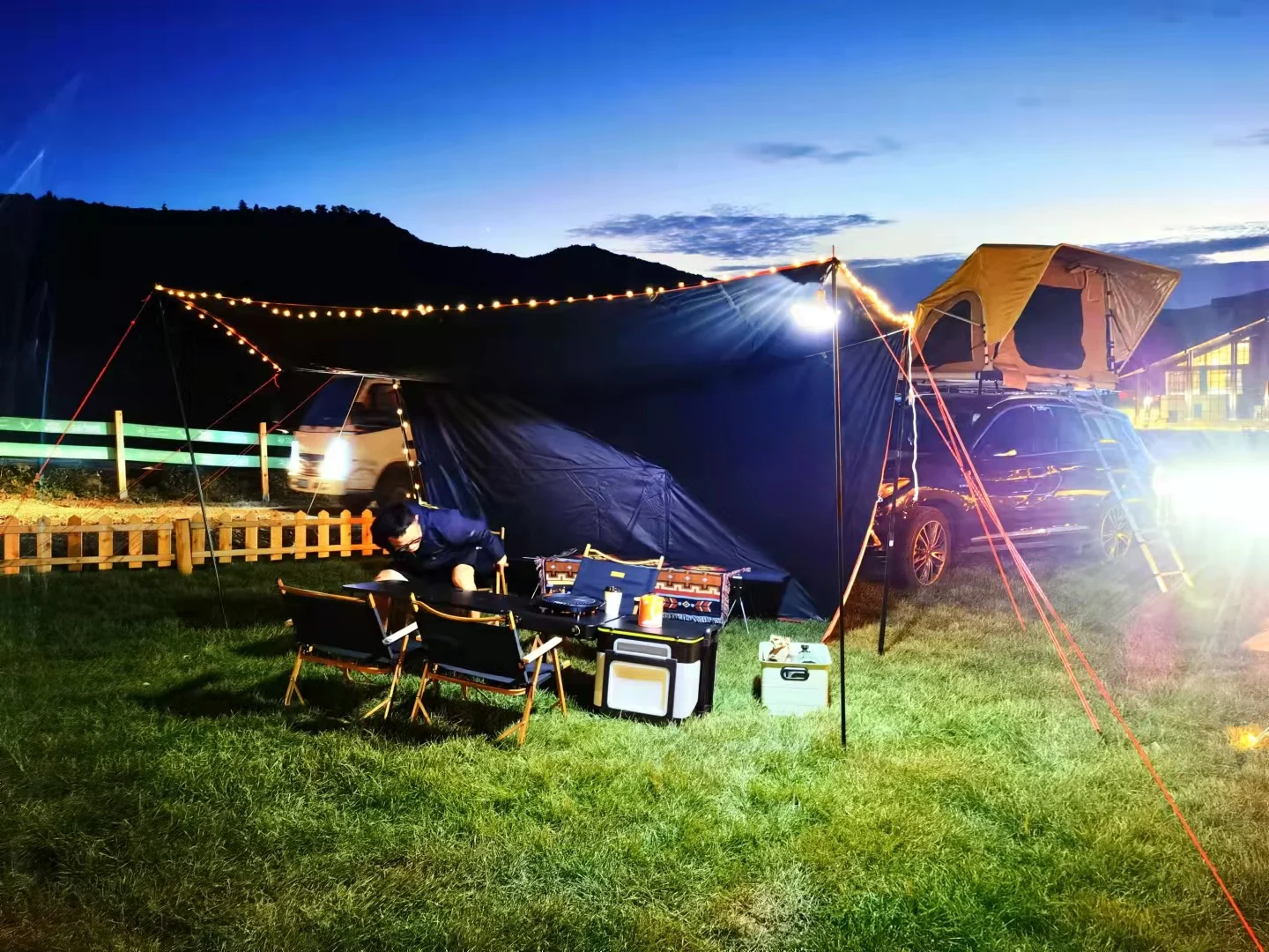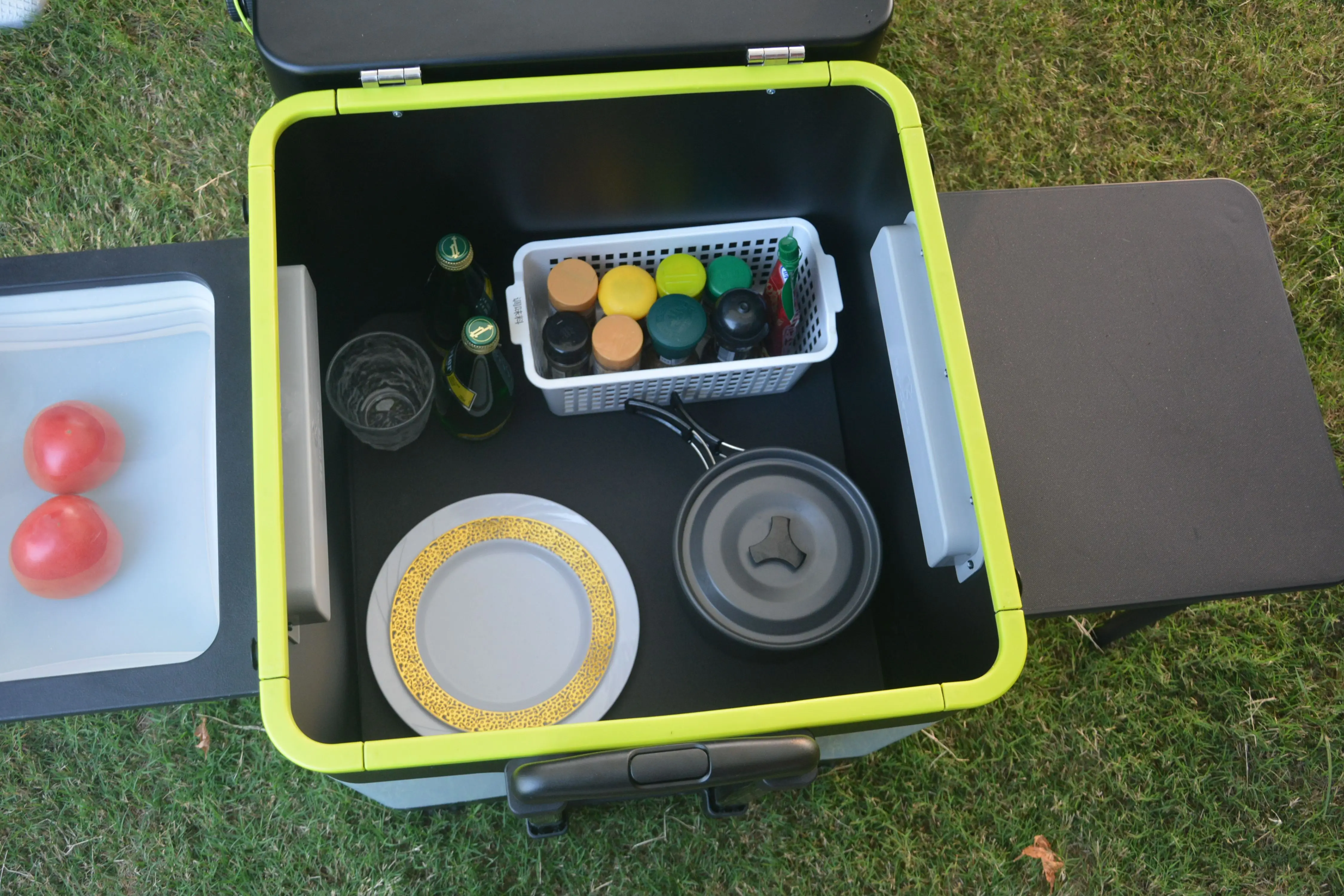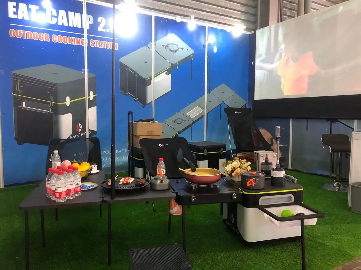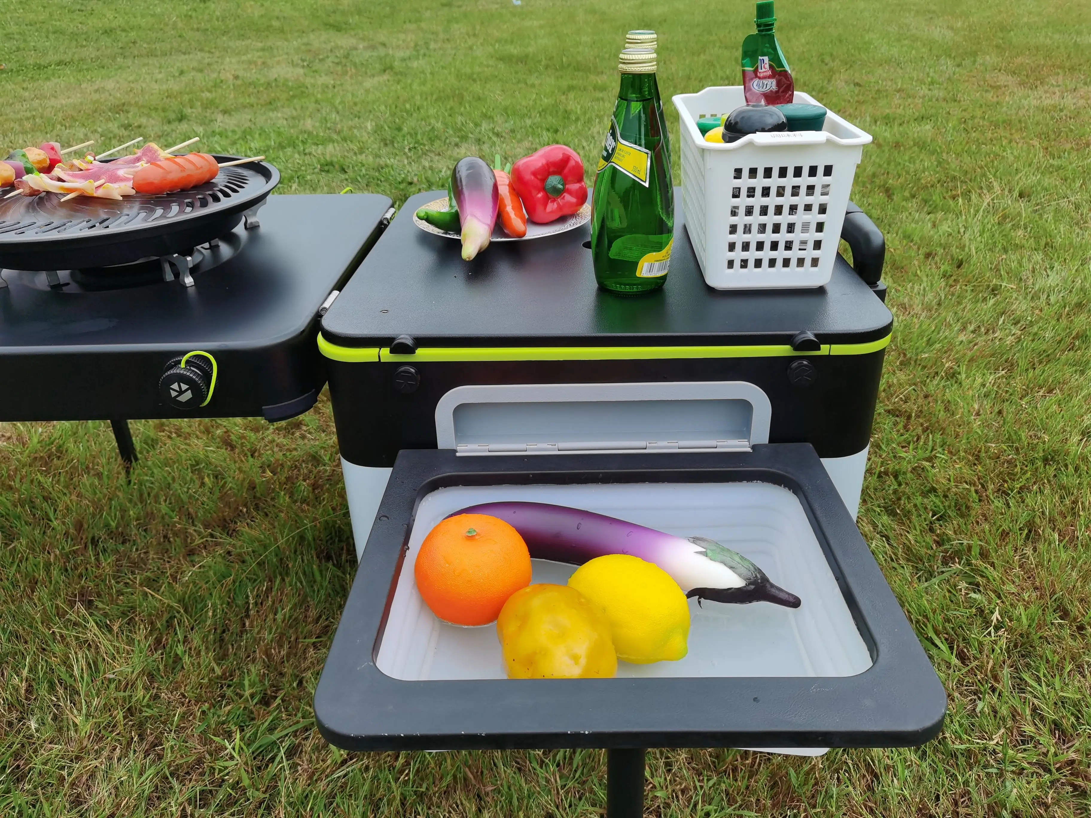 Camping Kitchen Outdoor Camping Cooking Station with Windproof Stove, Folding Camping Tables Storage Organizer for Beach BBQ Picnic Party