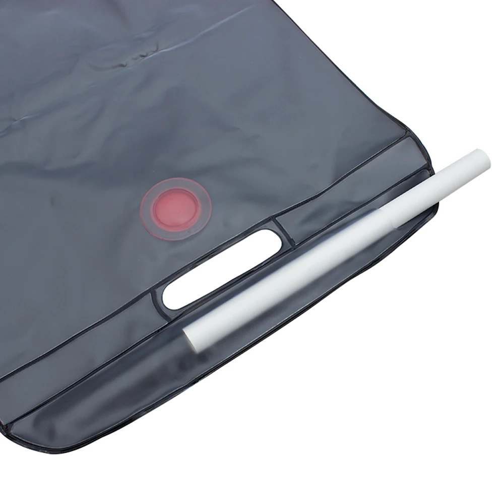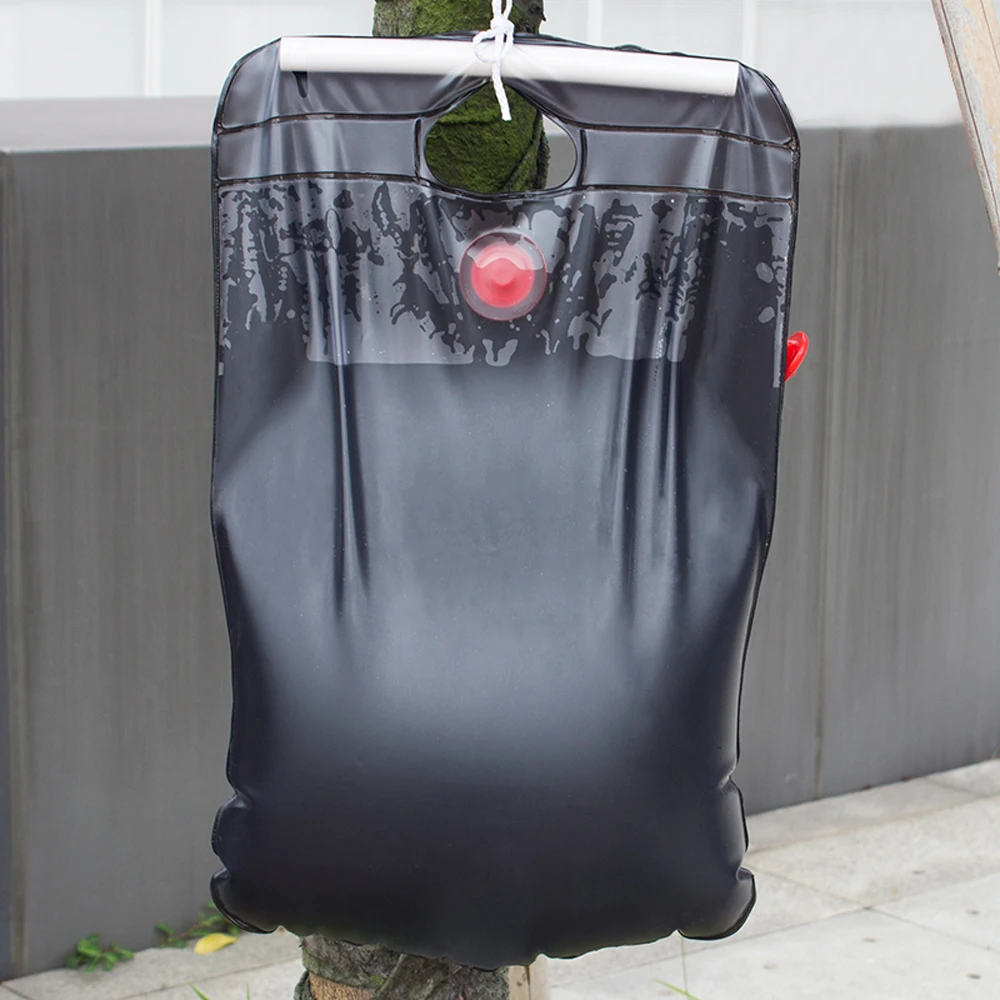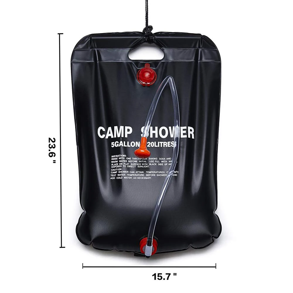 The solar shower bag is made of no toxic resistant PVC material. It has a more than adequate water capacity of 20 liters, which is enough for 3 adult showers.