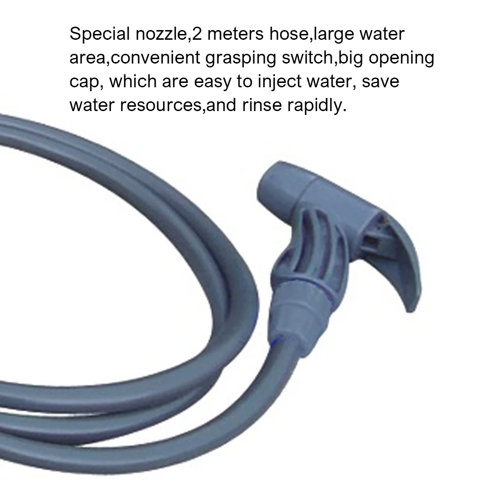 Special nozzle, 2 meters hose, big opening cap, convenient grasping switch ,which easy to injected water,save water resources, and rinse rapidly.