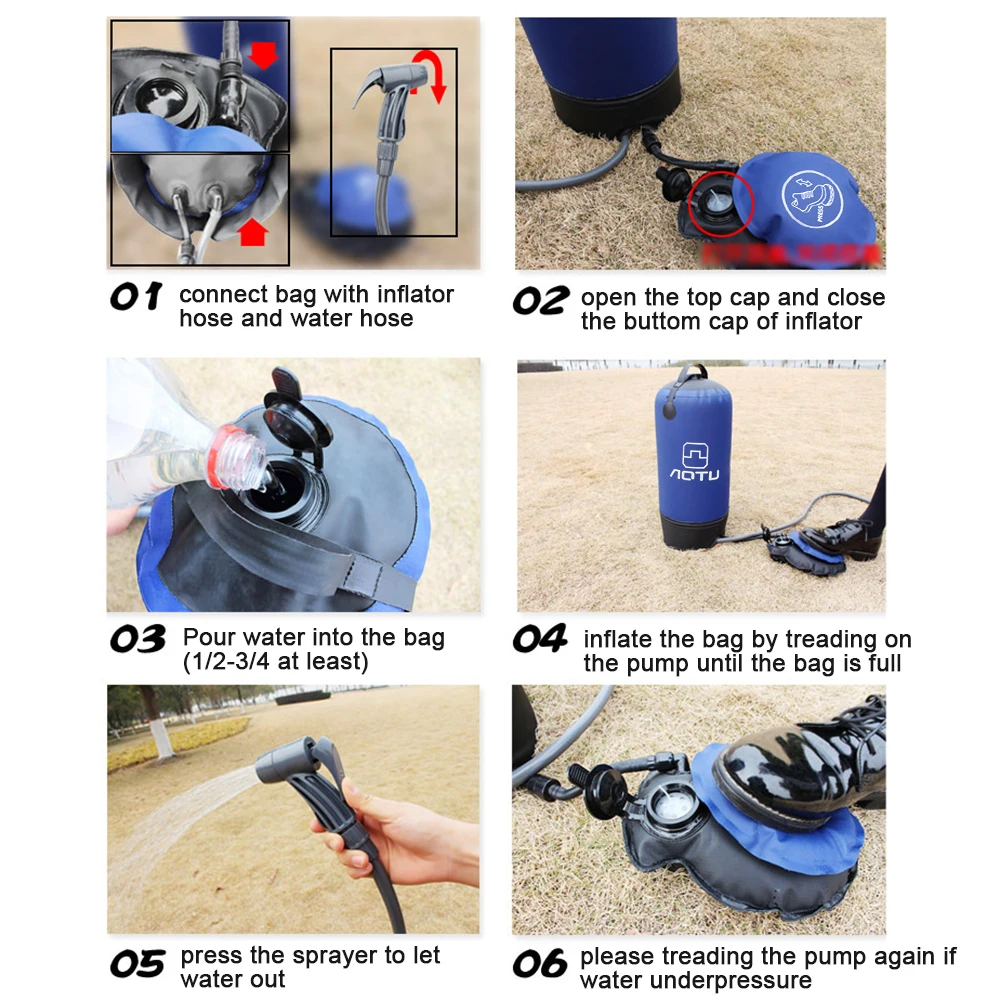 Outdoor Camping Pressure Inflatable Shower Bag Pressure Shower Water Bathing PVC with Foot Pump Lightweight Shower Shower Bag