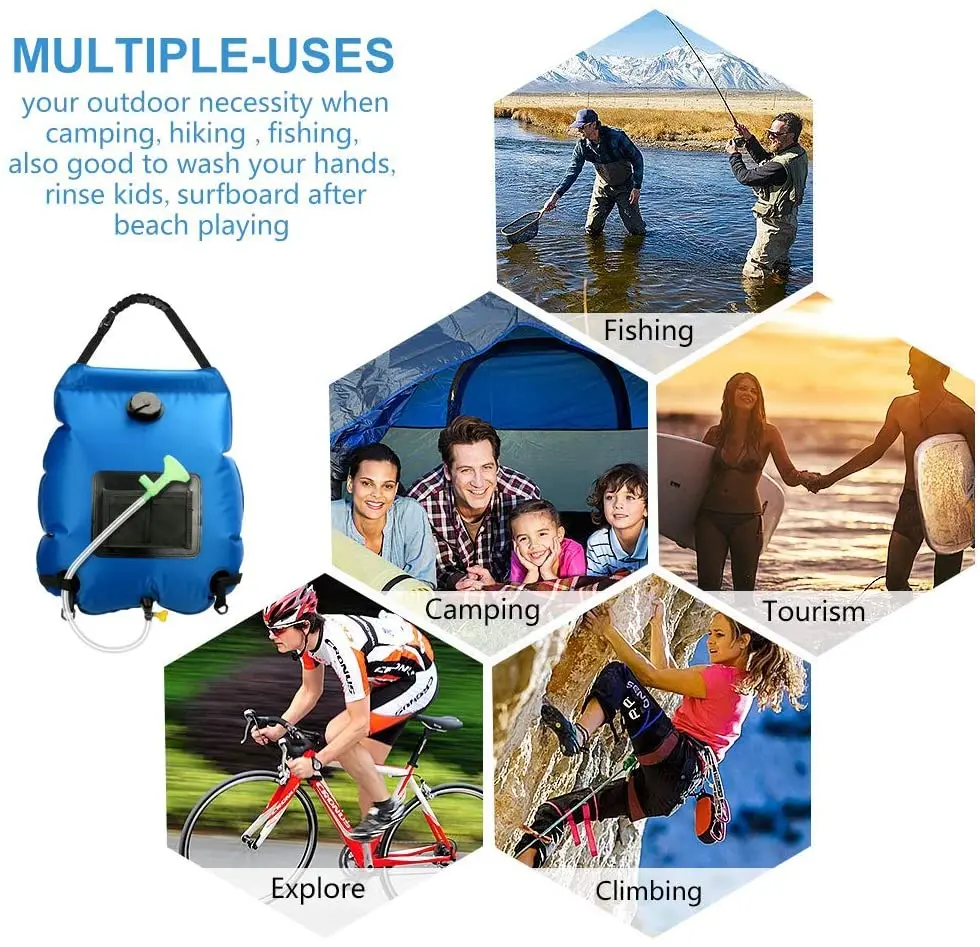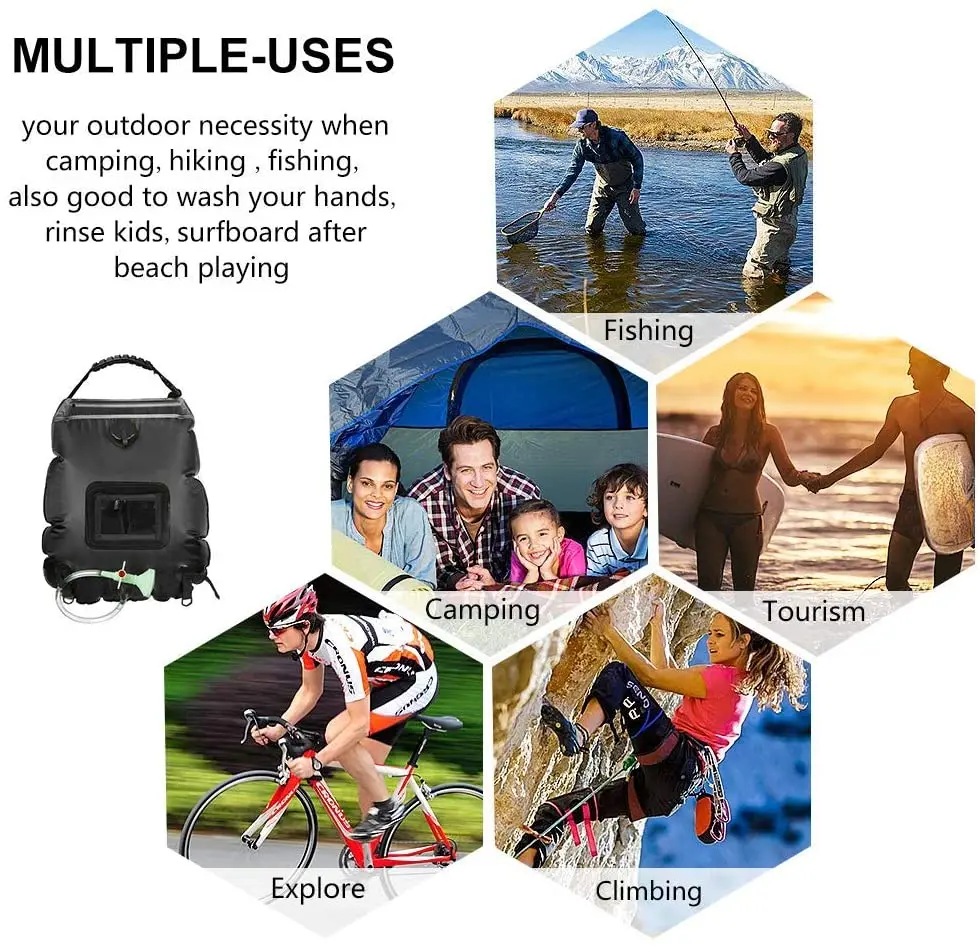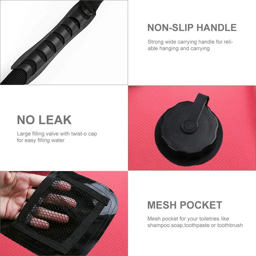 High Water Capacity:This camping shower bag can carry up to 5 gallons water for showering outdoor,let you enjoy a better and refreshing shower anywhere.