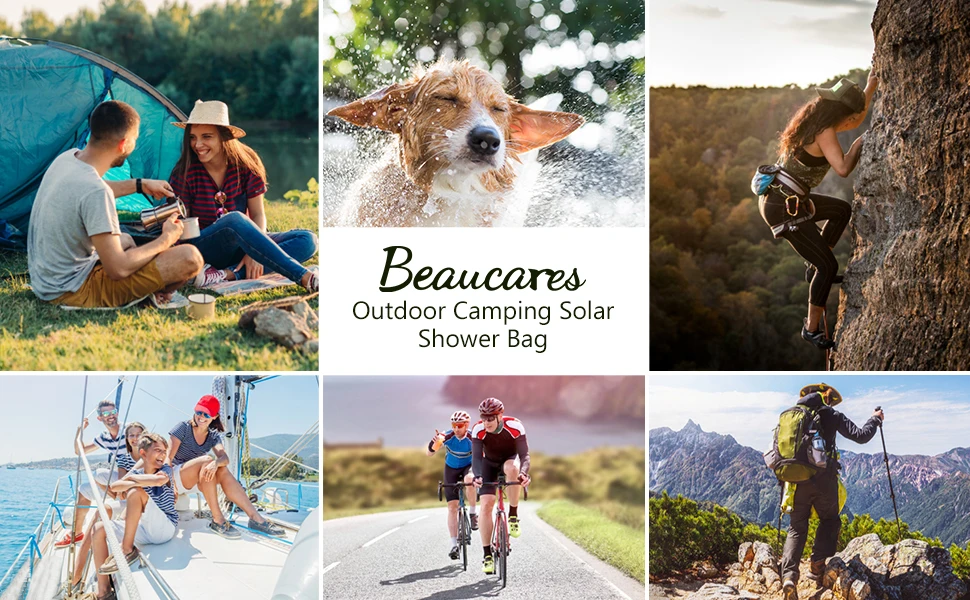 Heat absorbing design:This solar shower bag is made by environmental friendly and leak proof materials which are safe to human health. It heats water to 113°F (45°C) in 3 hours with direct sunlight.