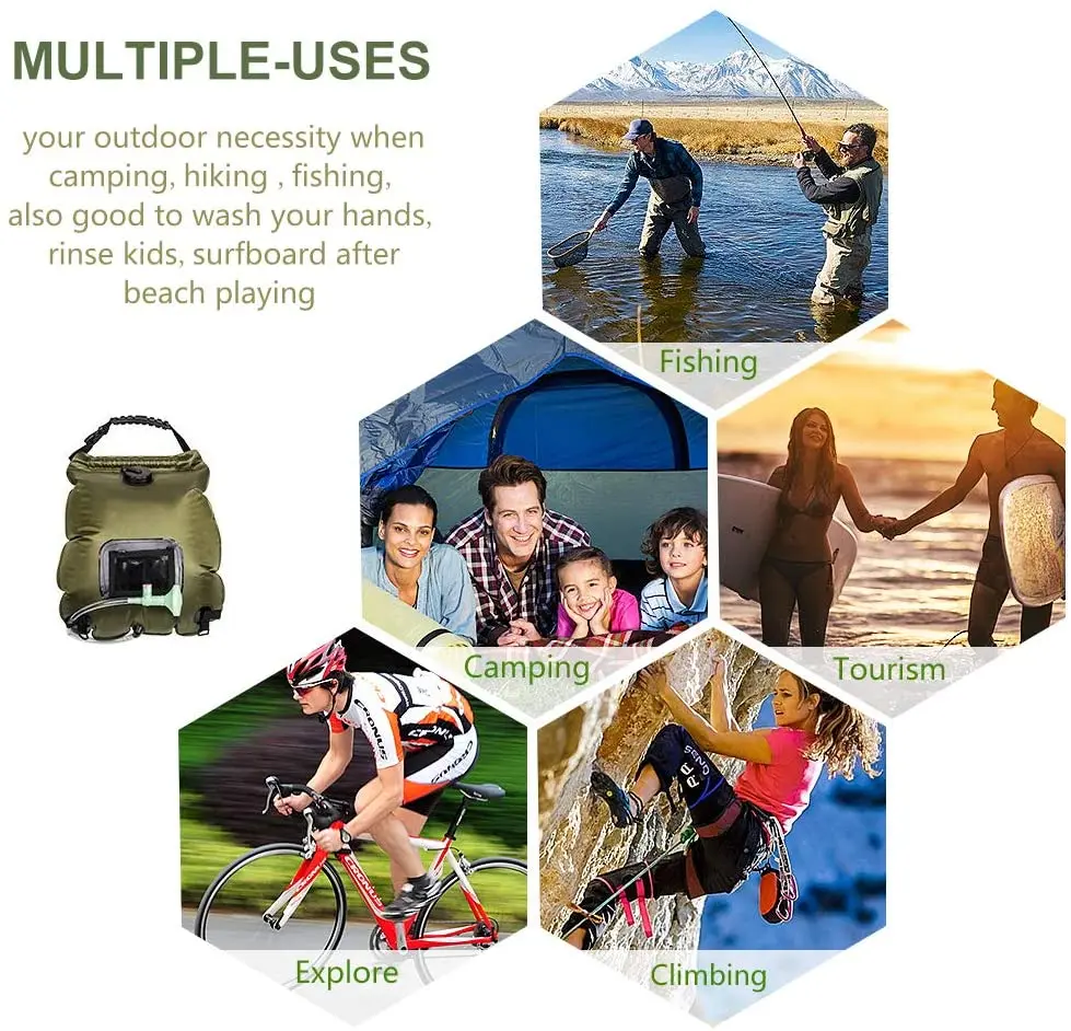 High Water Capacity:This camping shower bag can carry up to 5 gallons water for showering outdoor,let you enjoy a better and refreshing shower anywhere.