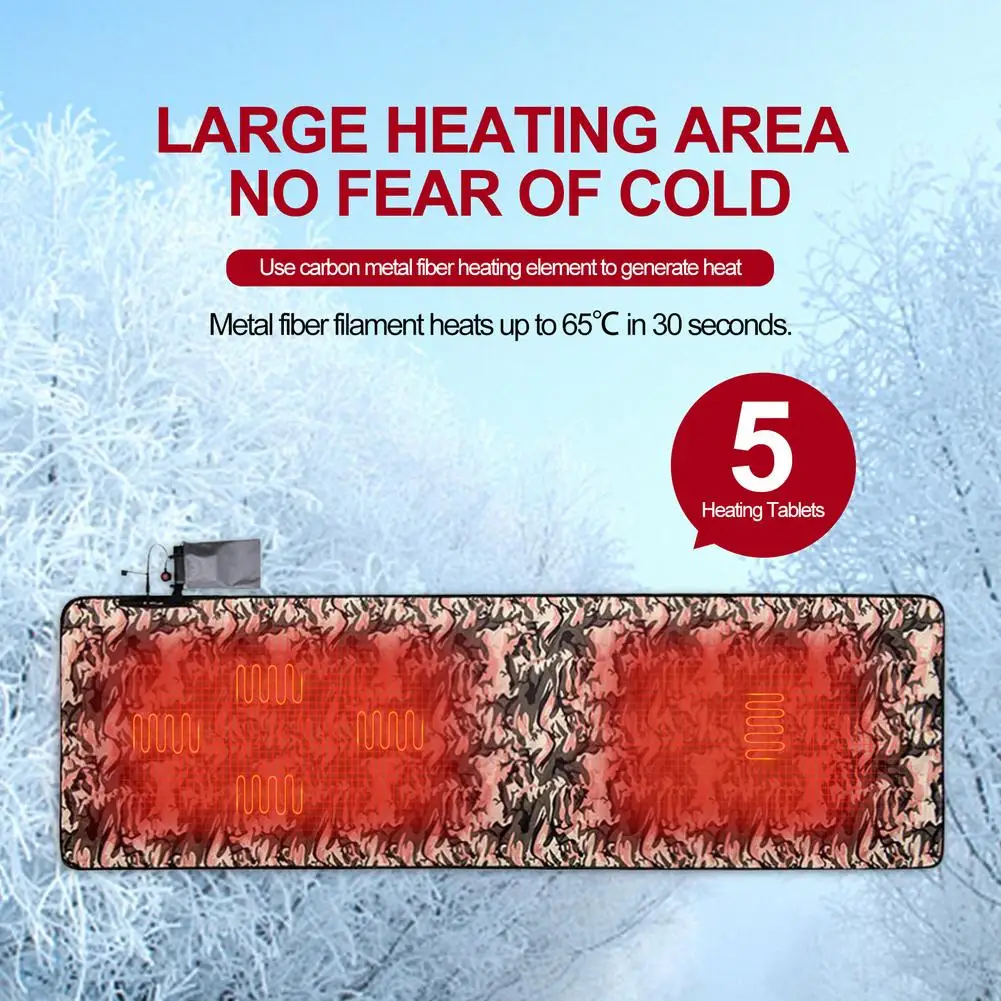 1、5 Heating Zones: The heating sheet of our Electric Sleeping Bag Cushion is made of high-quality carbon metal fiber, combined with the high-tech 5 Heating Zones, to ensure a large area of warmth. The reasonable design allows you to warm up quickly without fear of the cold outdoors. The temperature rises quickly to 65°C in 30 seconds.