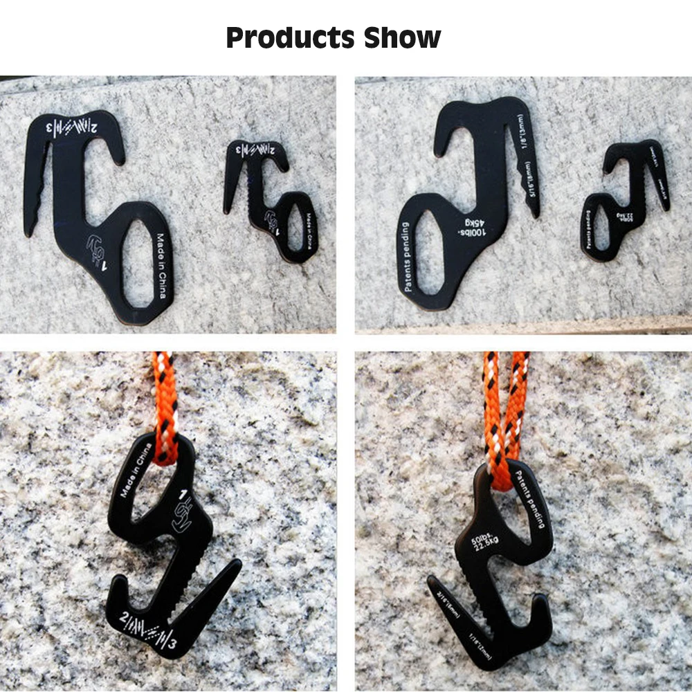 4PCS Outdoor Camping Tent Hook Aluminum Alloy 9 Shape Buckle Wind Rope Stopper Bundle Tight Paracord Buckle Sun Shelter