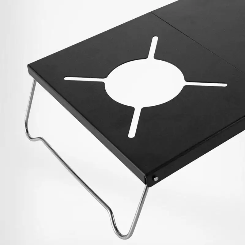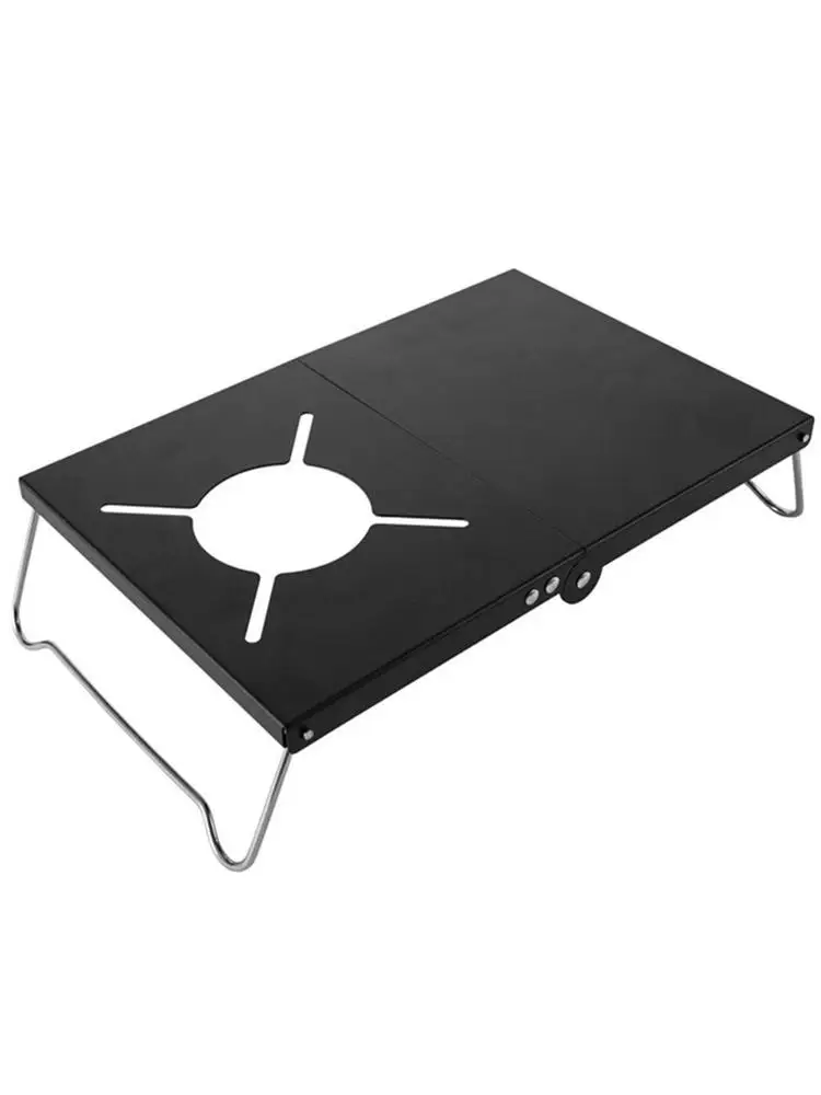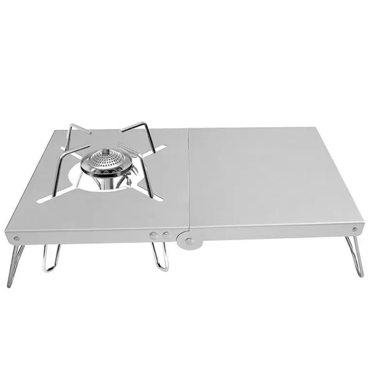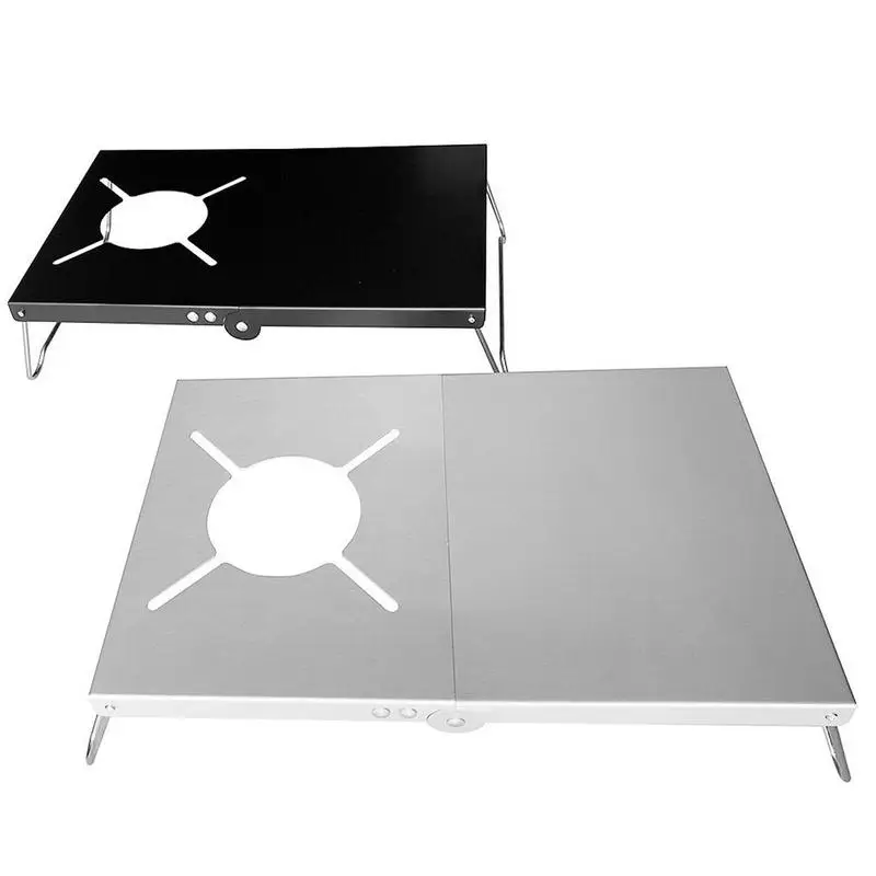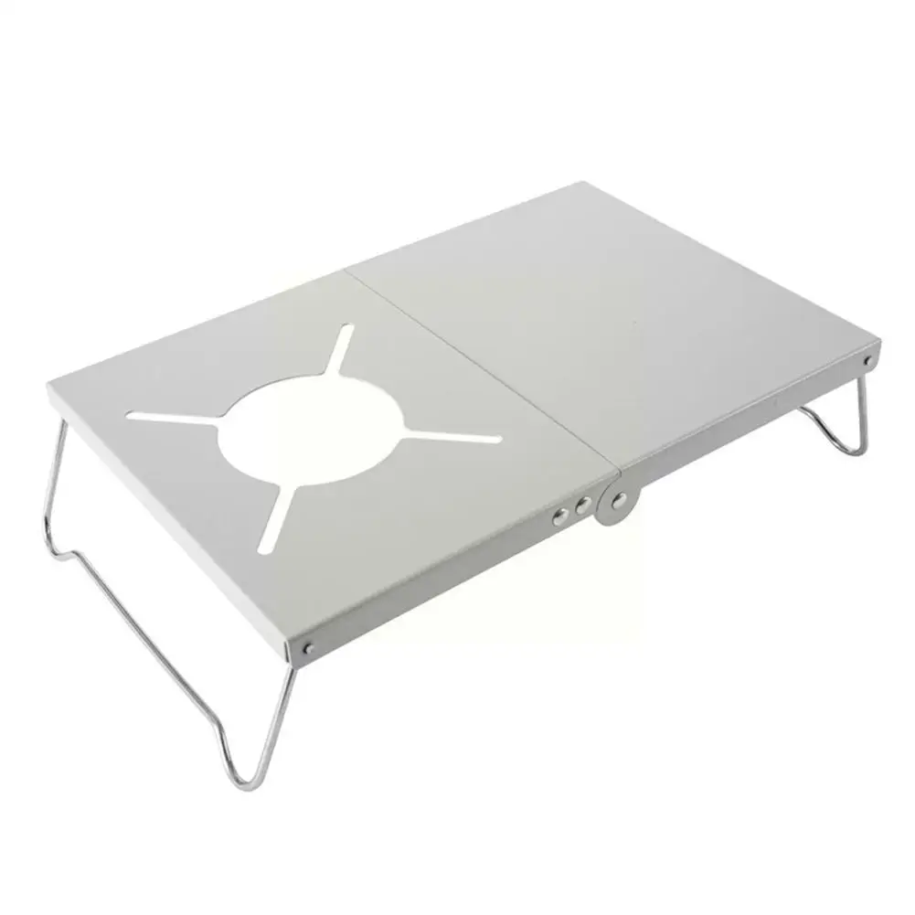The foldable outdoor stove can receive and cool the radiant heat generated by the burner during use, so that the heat does not reach the cassette cylinder directly. The foldable outdoor stovetop can also conveniently place various items such as camping tables.