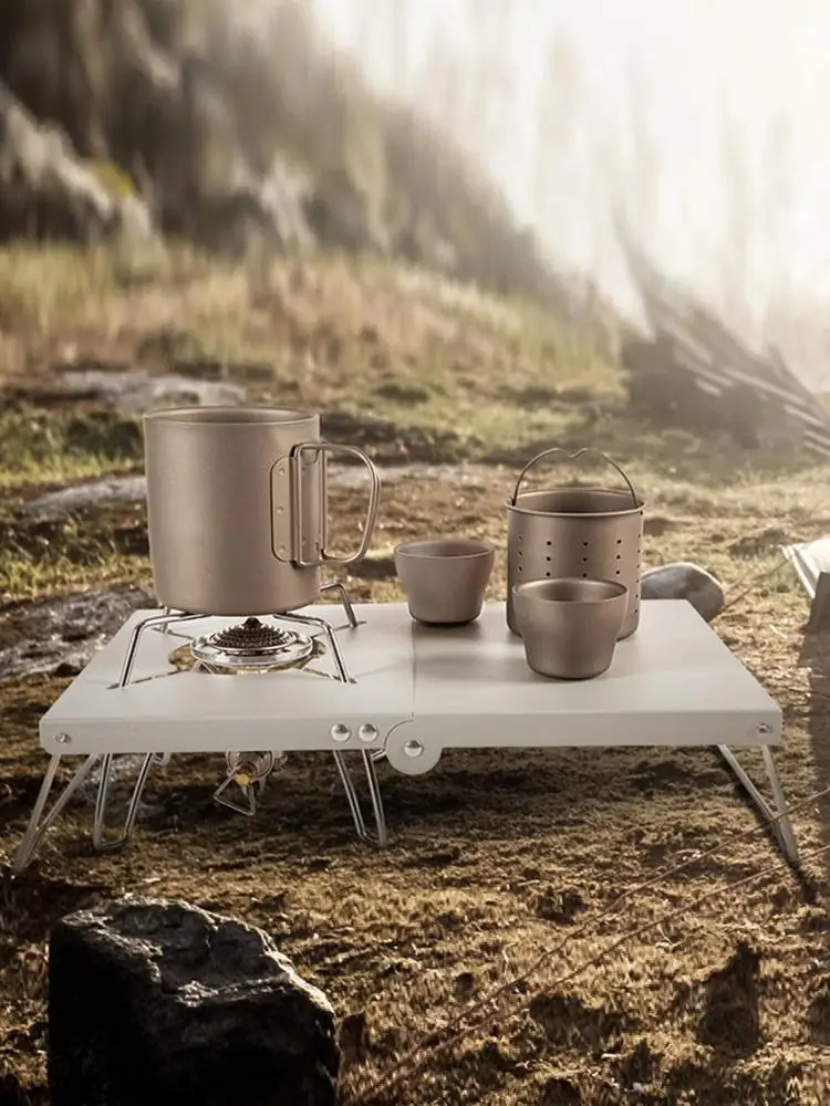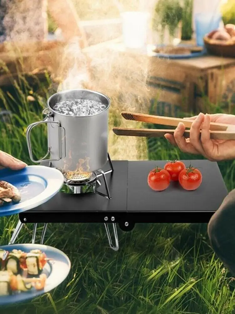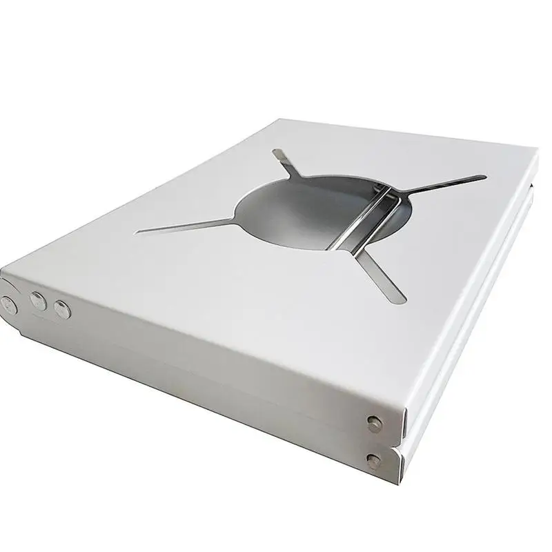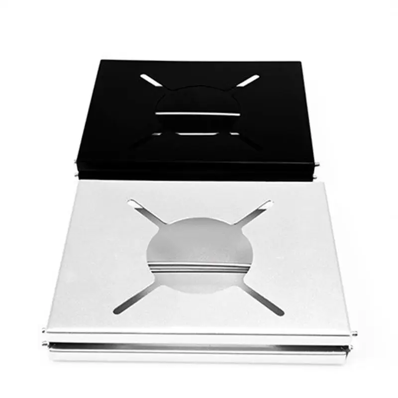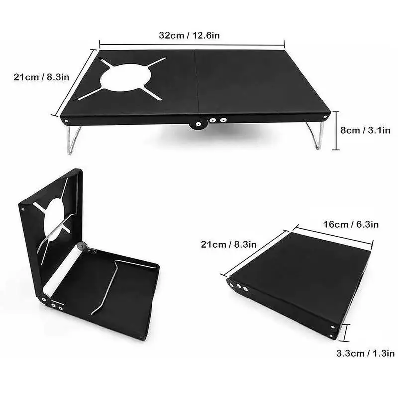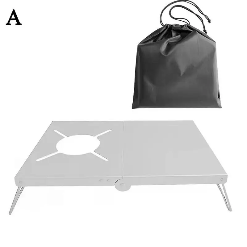 The foldable outdoor stove can receive and cool the radiant heat generated by the burner during use, so that the heat does not reach the cassette cylinder directly. The foldable outdoor stovetop can also conveniently place various items such as camping tables.