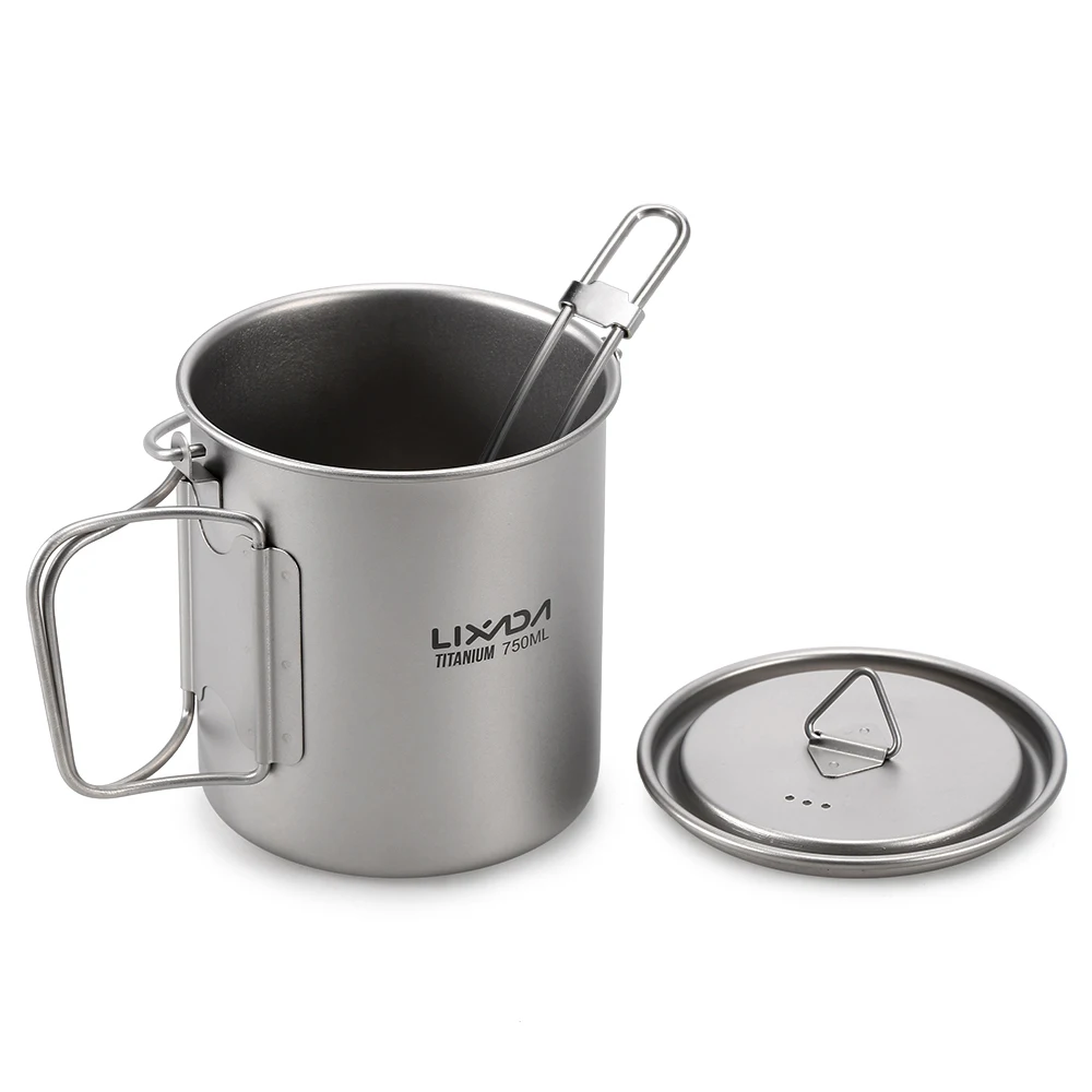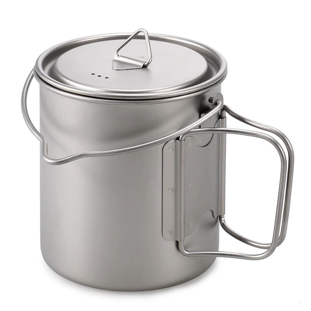 The 750ml pot and foldable spork are made of pure titanium, lightweight and corrosion-resistant, great for camping, hiking, backpacking, outdoor adventure and survival.