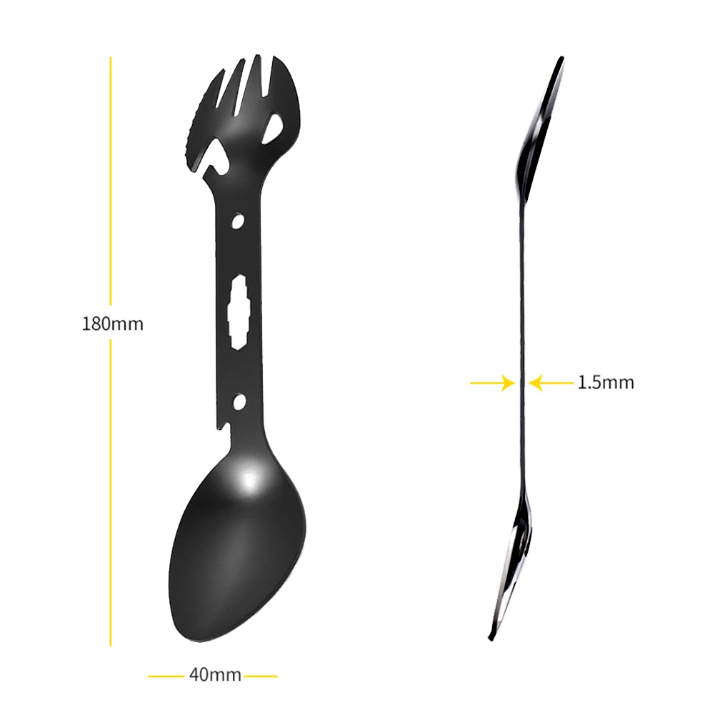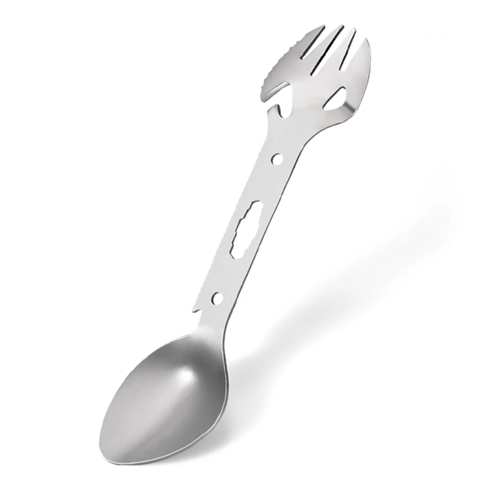 Multifunctional Stainless Steel EDC Spork Fork Spoon Bottle Can Opener Blade Wrench for Outdoor Picnic Survival Camping
