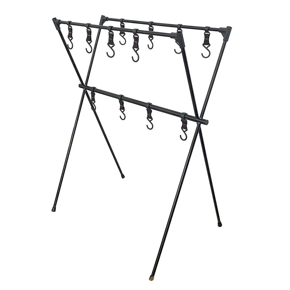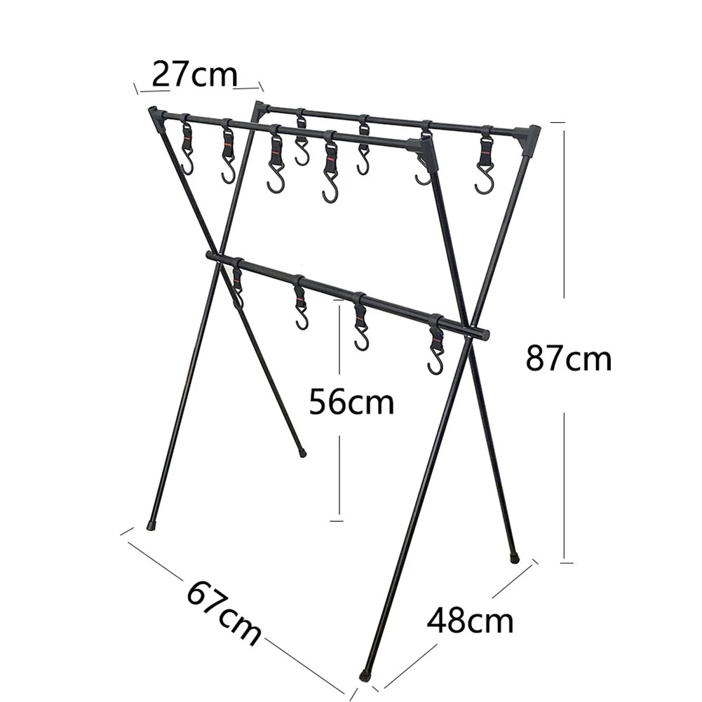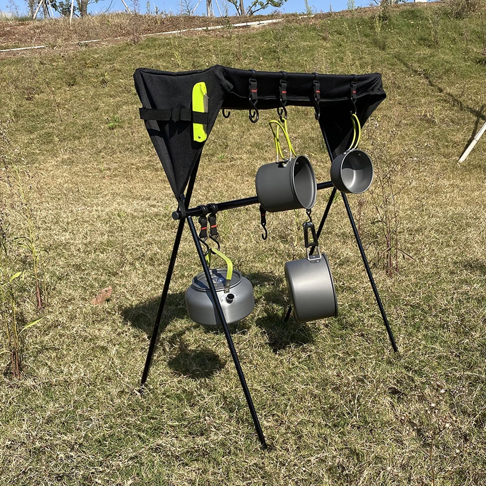 Outdoor Camping Shelf Aluminum Alloy Clothes Storage Hanger Picnic Cookware Hanging Rack Folding Triangle Rack With Cloth