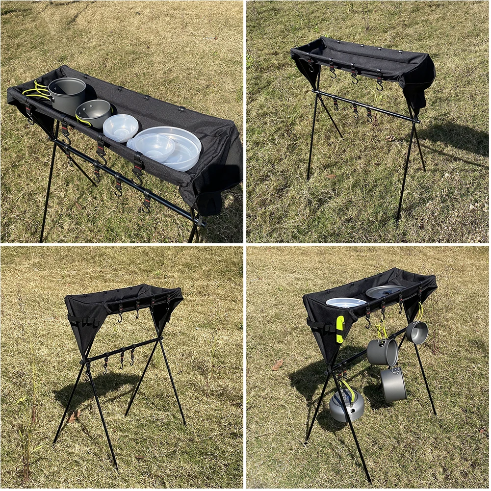 Feature: 1. Lightweight design, light load, put it in a backpack or car, and don’t take up too much space. 2. Aluminum alloy, with high hardness, high strength, strong bearing capacity and not easy to deform. 3. Triangular structure, stable and reliable, integrated installation, fast and convenient. 4. Plastic steel hooks are convenient for hanging outdoor objects and drying clothes. 5. You can easily use this folding camping frame anytime, anywhere, 6. Very easy to set up and fold, all in a highly portable and compact foldable packaging.Specification: Item: outdoor camping tripod-storage type Material: aluminum alloy bracket, oxford cloth storage frame Expanded size: 87*67*48*27cm/34.25*26.38*18.9*10.63” Storage size: 45*8*8cm/17.72*3.15*3.15”Note: Due to the different monitor and light effect, the actual color of the item might be slightly different from the color showed on the pictures. Thank you! Please allow 1-2cm measuring deviation due to manual measurement.