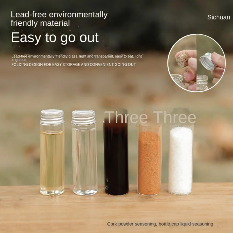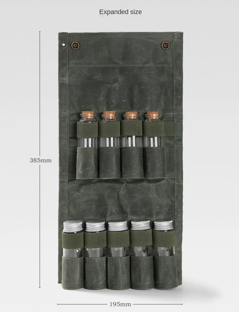 Outdoor camping spice bottle storage bag free 9 glass spice bottle barbecue spice bottle combo set canvas bag