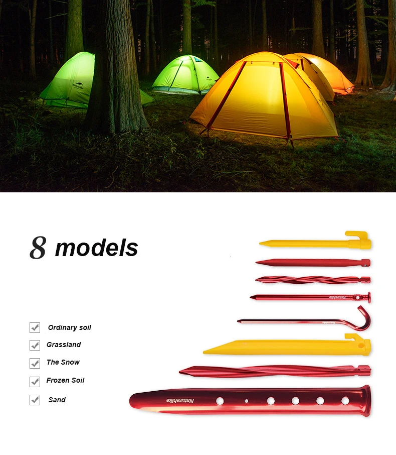 Naturehike Outdoor Camping Tent Nail Pegs Aluminum Alloy ABS Hiking Screw Tent Stake For Sand Snow Grassland Multiple Choices