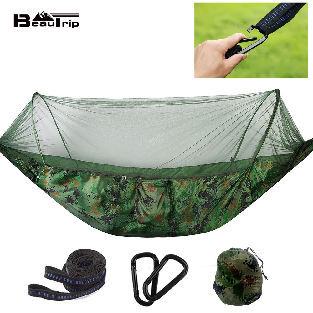 Portable Outdoor Camping Hammock with Mosquito Net Parachute Fabric