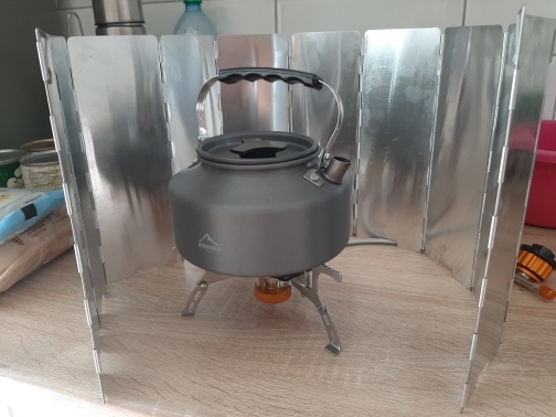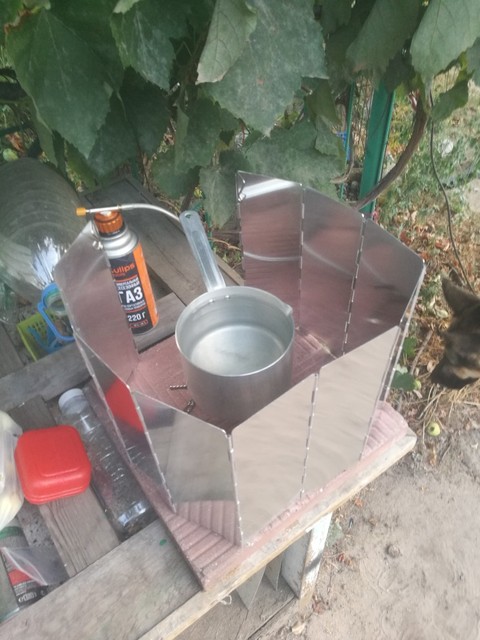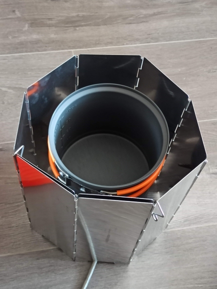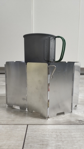 Excellent protection from the wind, high and with a stock in size of the dishes, the слегbone closes my burner with a bonfire and still in stock 4 plates to increase the diameter,
