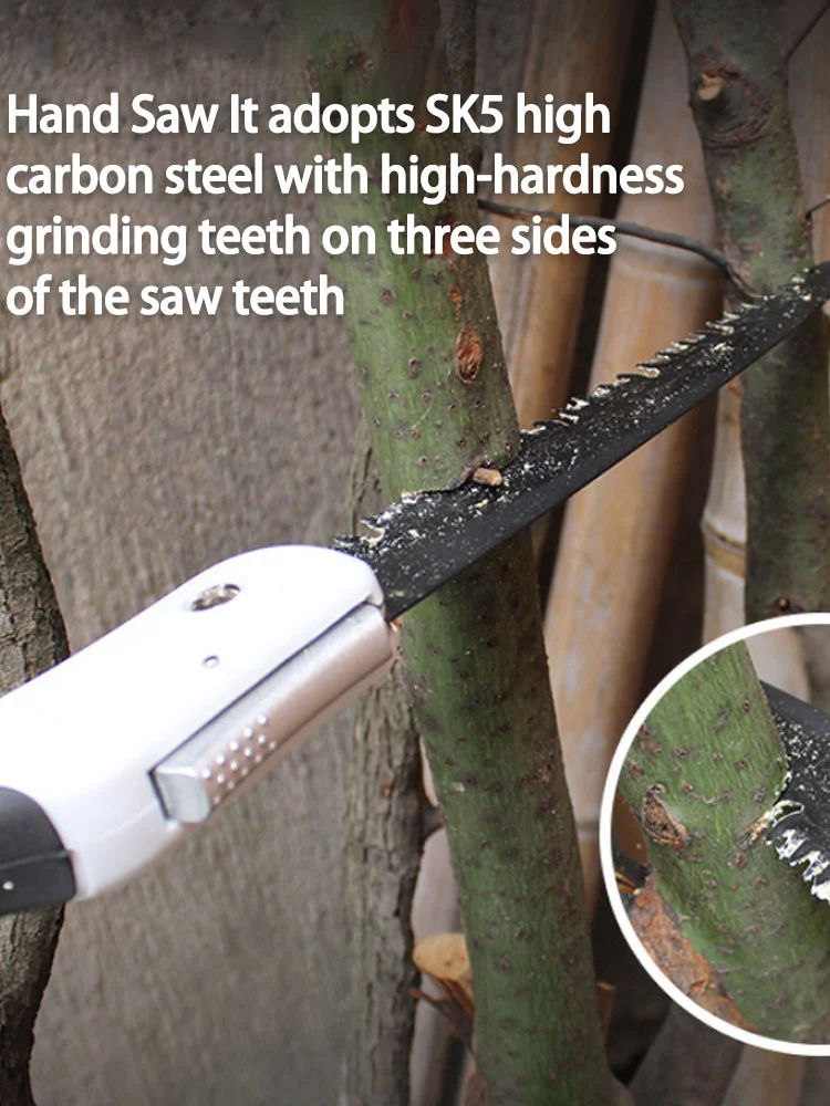1.Hand Saw: It adopts SK5 high carbon steel with high-hardness grinding teeth on three sides of the saw teeth. The cutting is fast and powerful, and it is not stuck. It is very suitable for family use and professional use.