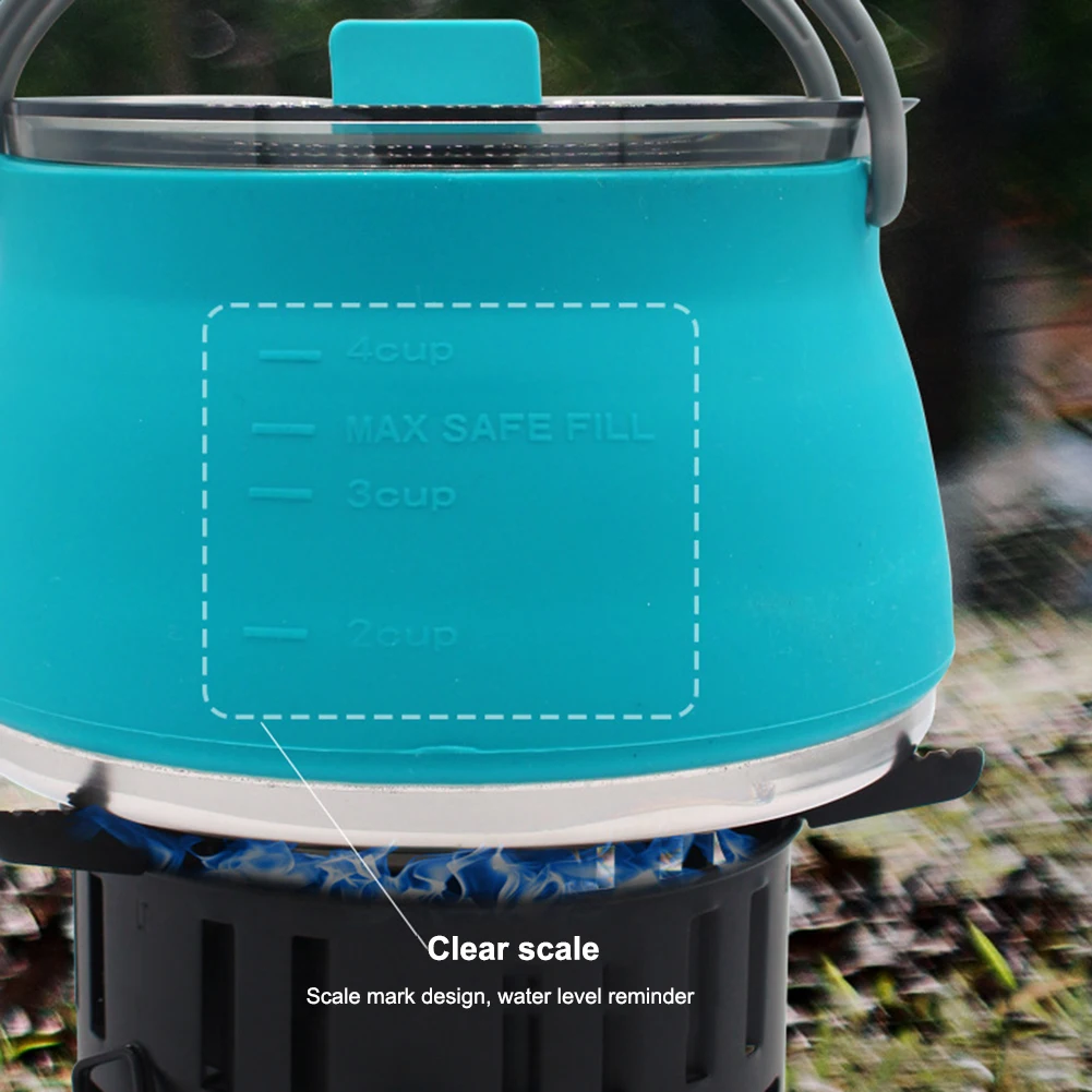 Silicone Folding Kettle Portable Coffee Tea Cooker Collapsible Mini Boiling Water Pot with Handle for Outdoor Camping Hiking Backpacking