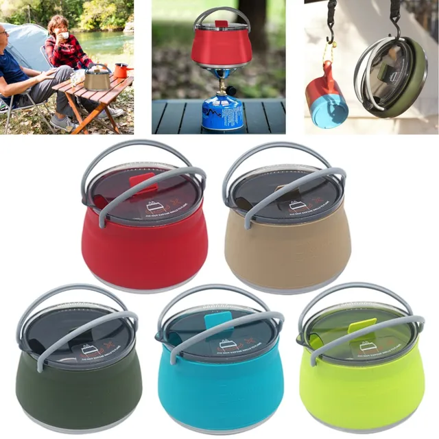 Silicone Folding Kettle Portable Coffee Tea Cooker Collapsible Mini Boiling Water Pot with Handle for Outdoor Camping Hiking Backpacking