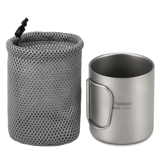 Double wall titanium tea cup, great for home, office, camping, hiking, backpacking, picnic, and other outdoor activities.