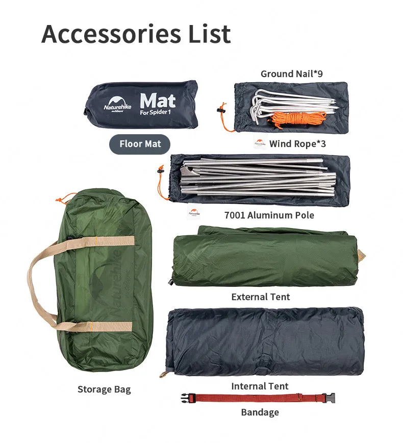 Accessories: Ground Nail*8 / Wind Rope*2 / Storage Bag*1 / Bandage*1
