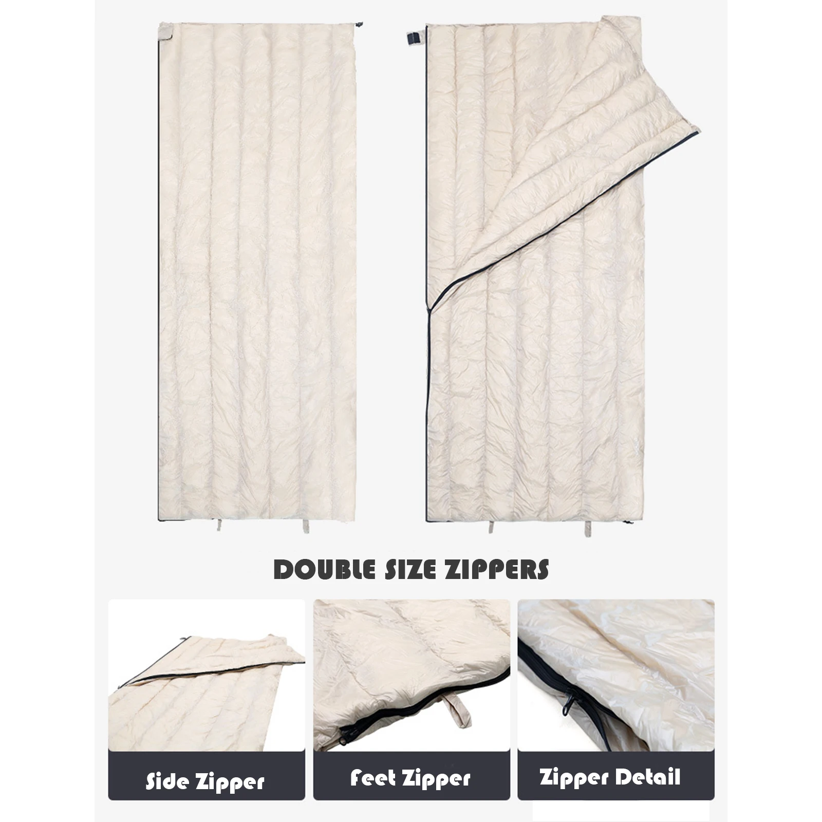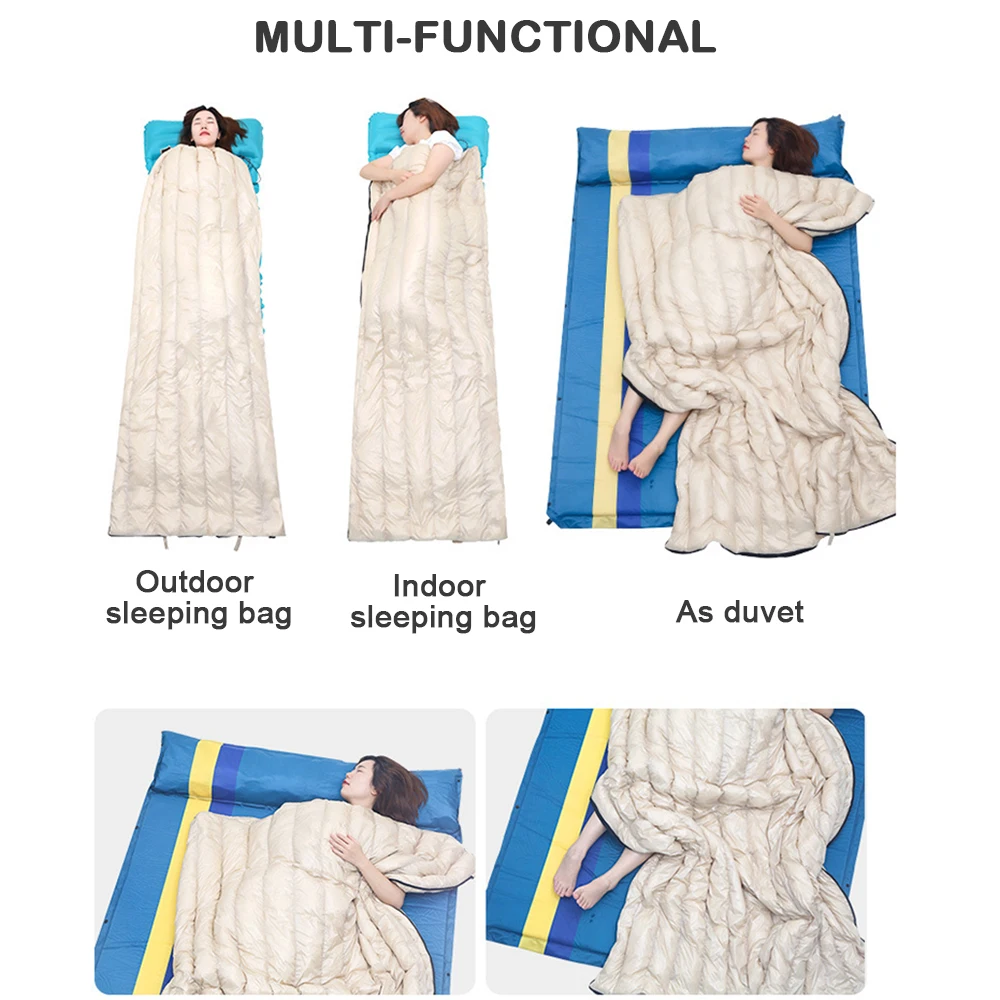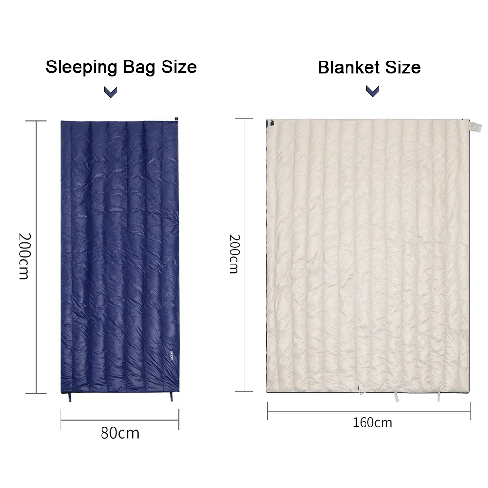 This is not only a high-quality duck down sleeping bag, when unzipped, can be worked as a quilt.