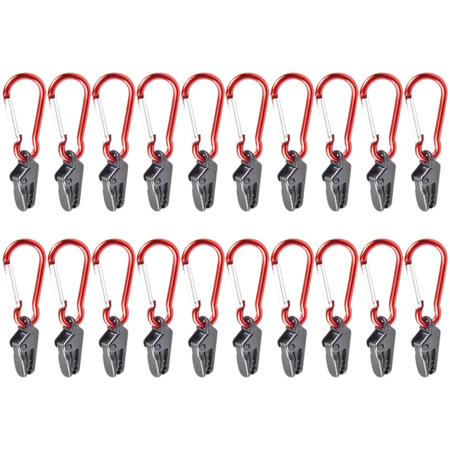 5/10/20pcs Portable Outdoor Hiking Camping Tent Awning Canopy Fixing Clamp Grip with Carabiner Hook Windproof Tarpaulin Plastic Wind Rope Snap Clips + Quick-hanging Buckle Note: ![]() 5/10/20 X Tent Clamp with Carabiner Hook