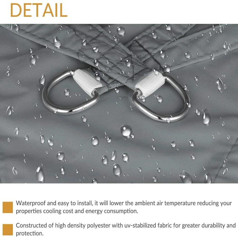 —The sunshade sail has a D-ring and wind rope, allowing you to easily connect houses/trees/other buildings.